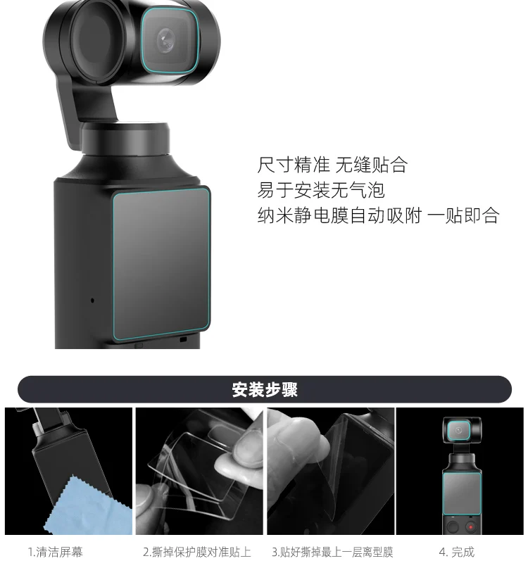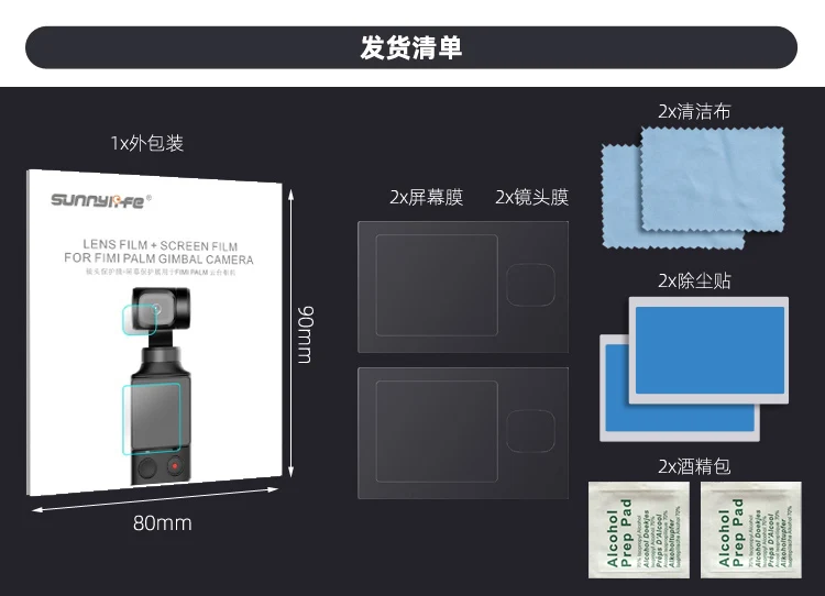 2 X пленка для объектива 2 х экранная пленка 2 X снятие наклейка от пыли 2 х чистящая ткань 2 X спиртовая упаковка Примечание: портативная камера Gimbal не входит в комплект только для справки спасибо!