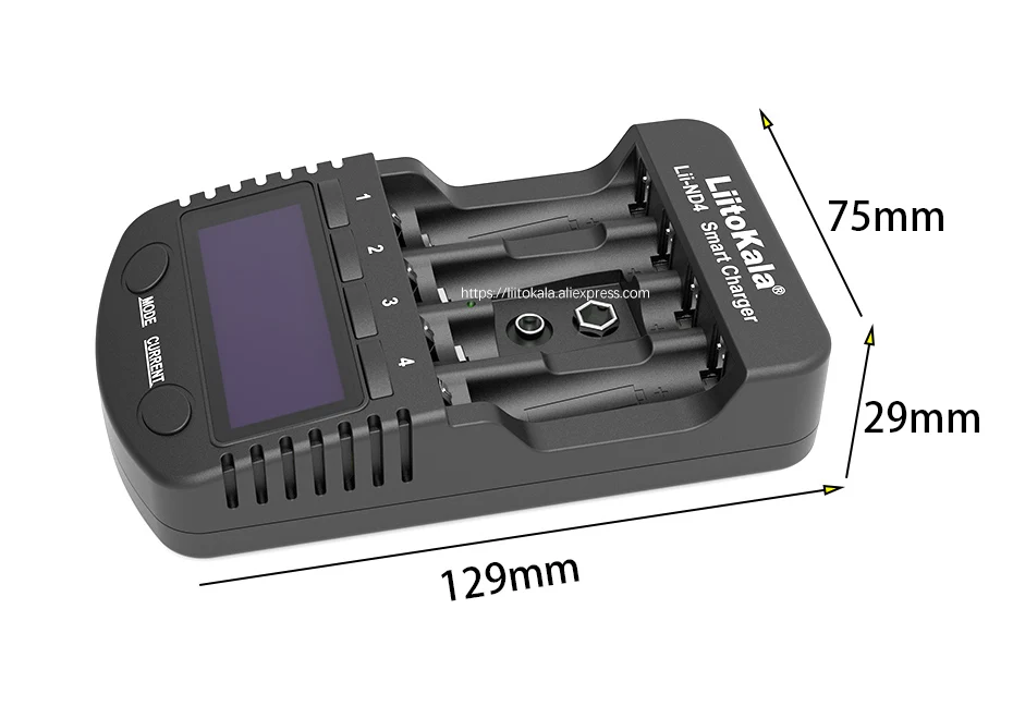 Бренд: LiitoKala Модель: Lii-ND4 Вход: DC 12V/1. Выход 5A: 1,48 В постоянного тока (300 мА/500 мА/700 мА/1000 мА) / 9 В (30 мА) выход USB: 5 В/1 а подходящие Аккумуляторы: NiMH/Cd AA, AAA, 9V, батарея.