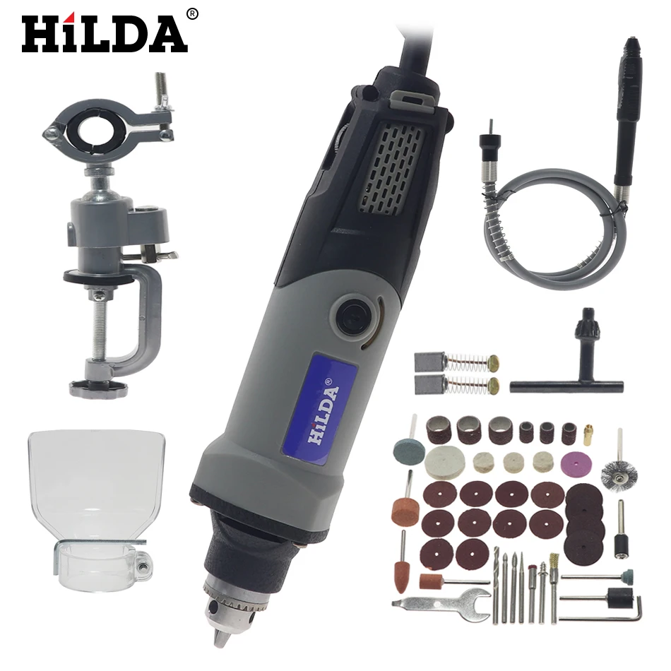HILDA 400 Вт 28000 об/мин, 6-позиционная электрическая переменная скорость, электрическая мельница для дремеля, аксессуары для инструмента, электрическая дрель, гравировальная машина