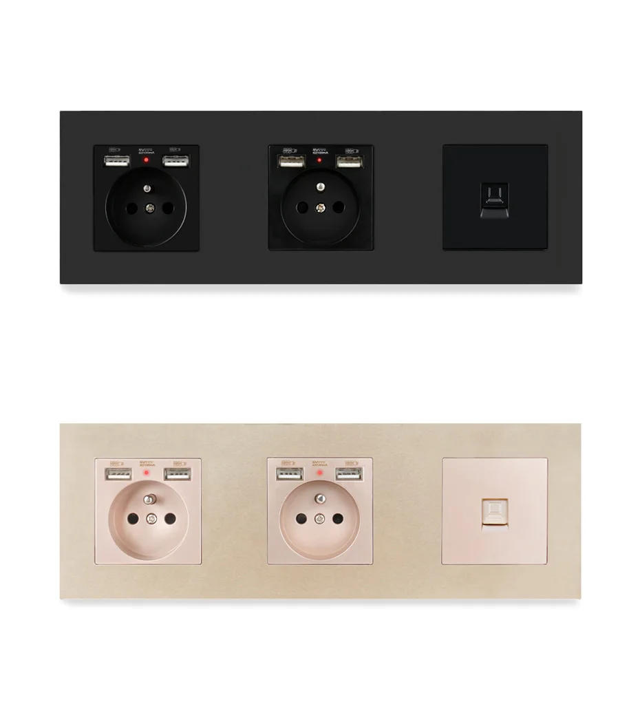 ESOOLI PC пластиковая панель двойная французская стандартная розетка с 4 USB + RJ11 телефонный разъем + RJ45 Интернет-компьютер