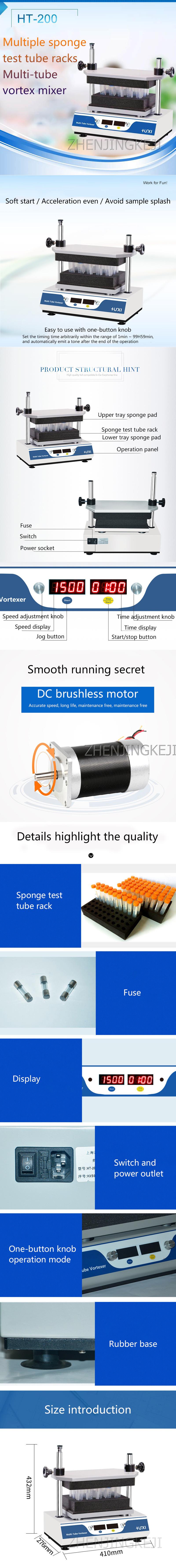 Несколько тестовых трубок Вихревой смеситель многотрубный смеситель бесщеточный двигатель вихревой скорости точный миксер лабораторный аппарат