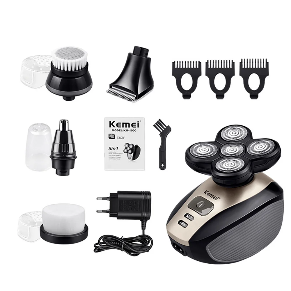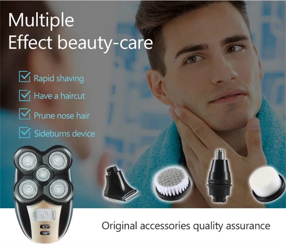 -5 в 1 комплекте, кроме головки бритвы, есть Точная Головка триммера, Головка триммера для носа и ушей, мягкая губка для лица и щетка для очистки лица.