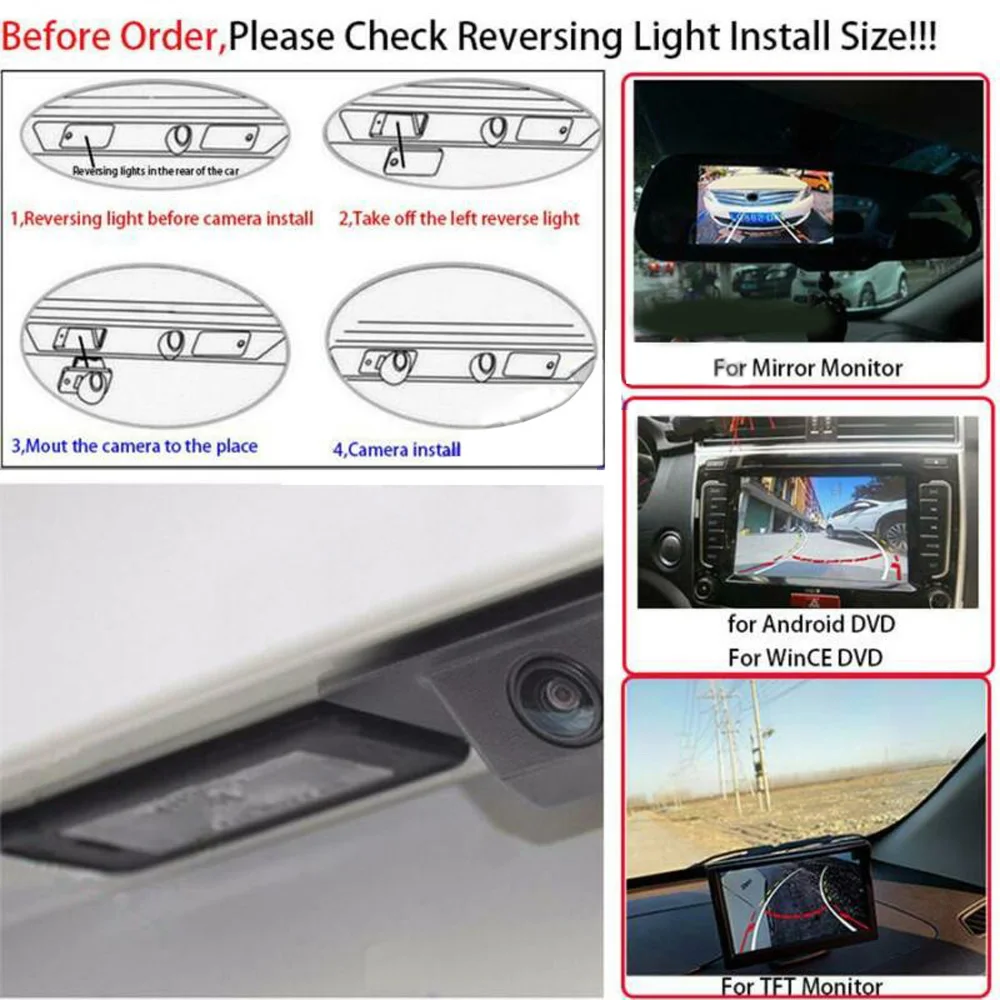 * Импортные микросхемы обеспечивают Coms заднего хода, 4-Слои стеклянные линзы придают камера изображения четкие, стабильные, хорошо ночное видение эффект.