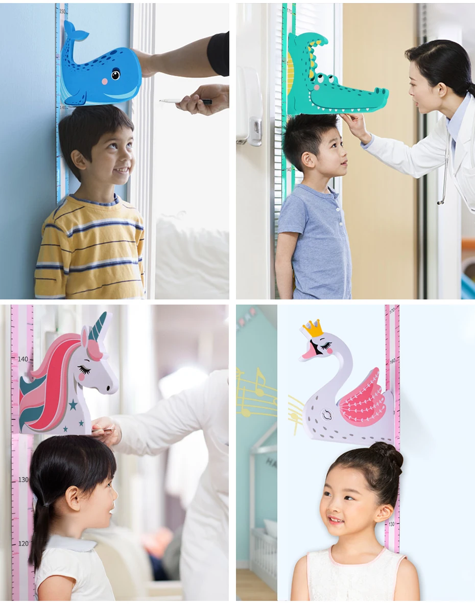 3D Забавный милый мультяшный стикер с линейкой для измерения высоты, гибкие детские наклейки на стену