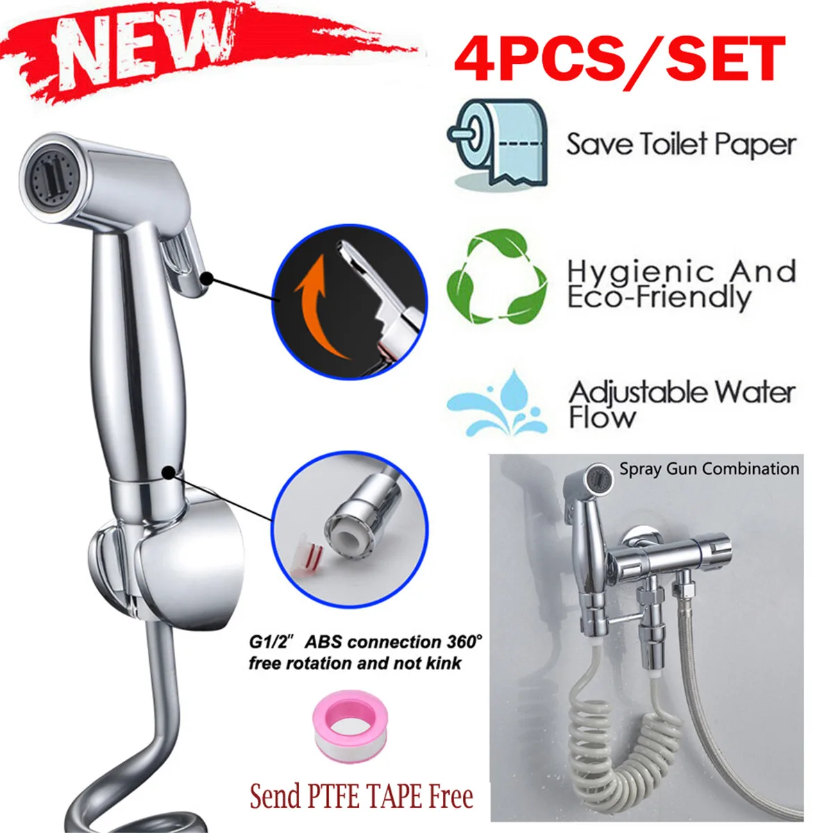 4 шт./компл. (1 x Головка распылителя+1 х шланг +1 х держатель для вешалки + FTFE TEPE)