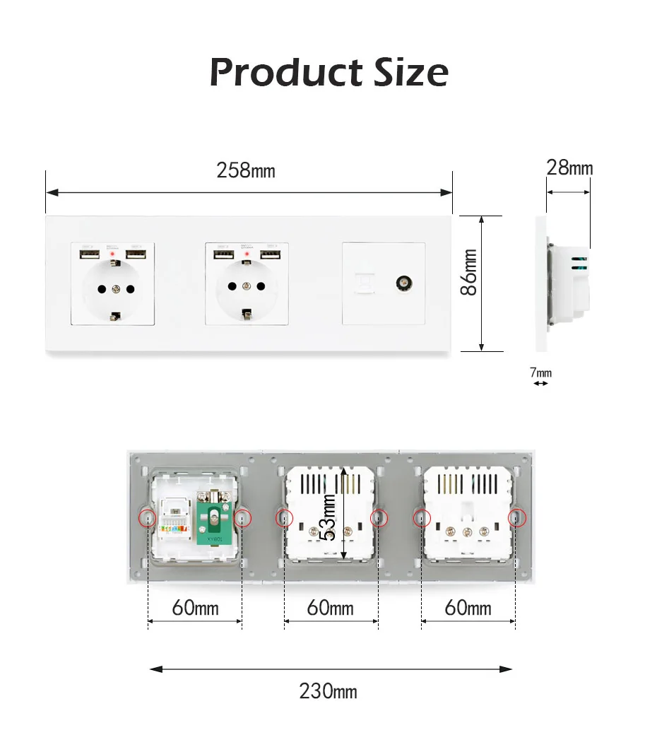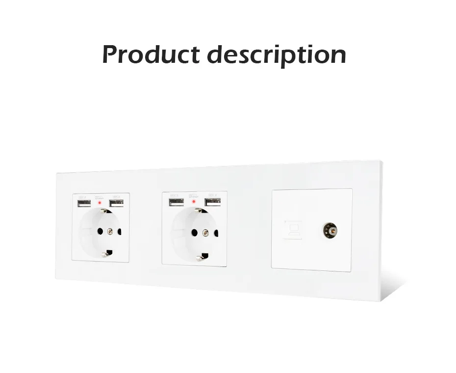 Пластиковая панель ESOOLI, электрическая розетка европейского стандарта с 4 USB-портами для зарядки, гнездовой разъем для телевизора + Интернет-компьютер для передачи данных RJ45