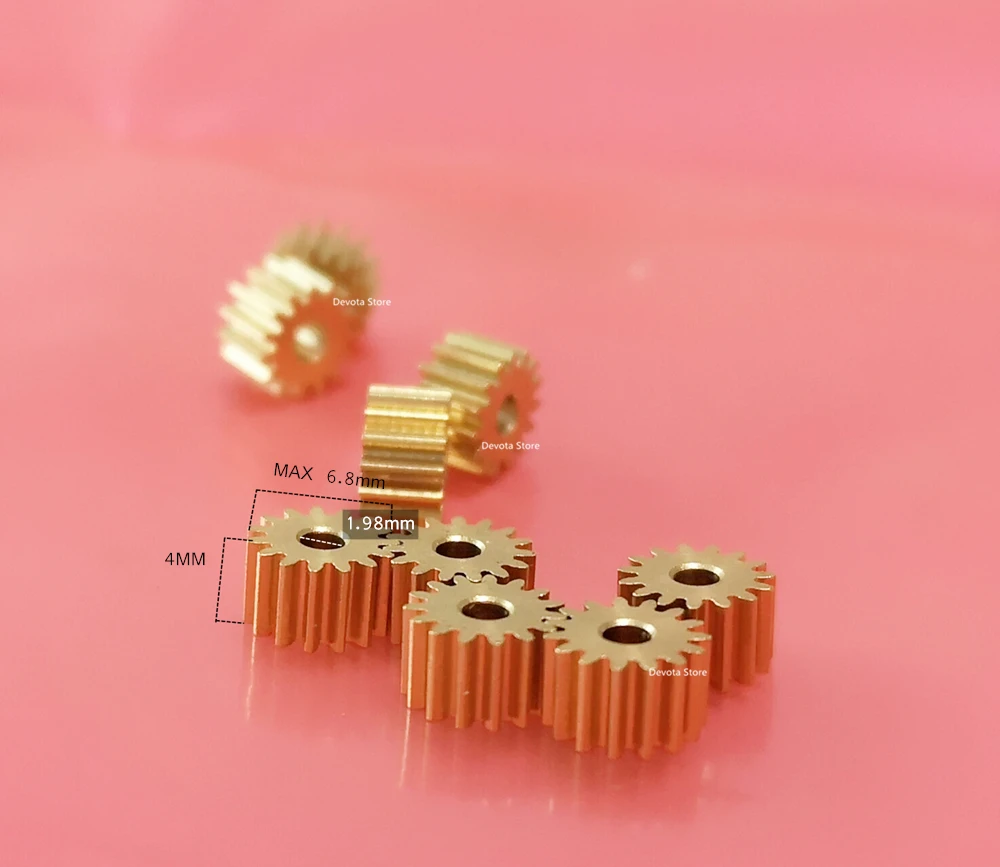 Модуль: 0,4 модуль Количество зубов: 15 зубов Внутреннее отверстие: 1,98 мм Общая толщина: 4 мм Максимальный наружный диаметр: 6,8 мм Материал: латунь