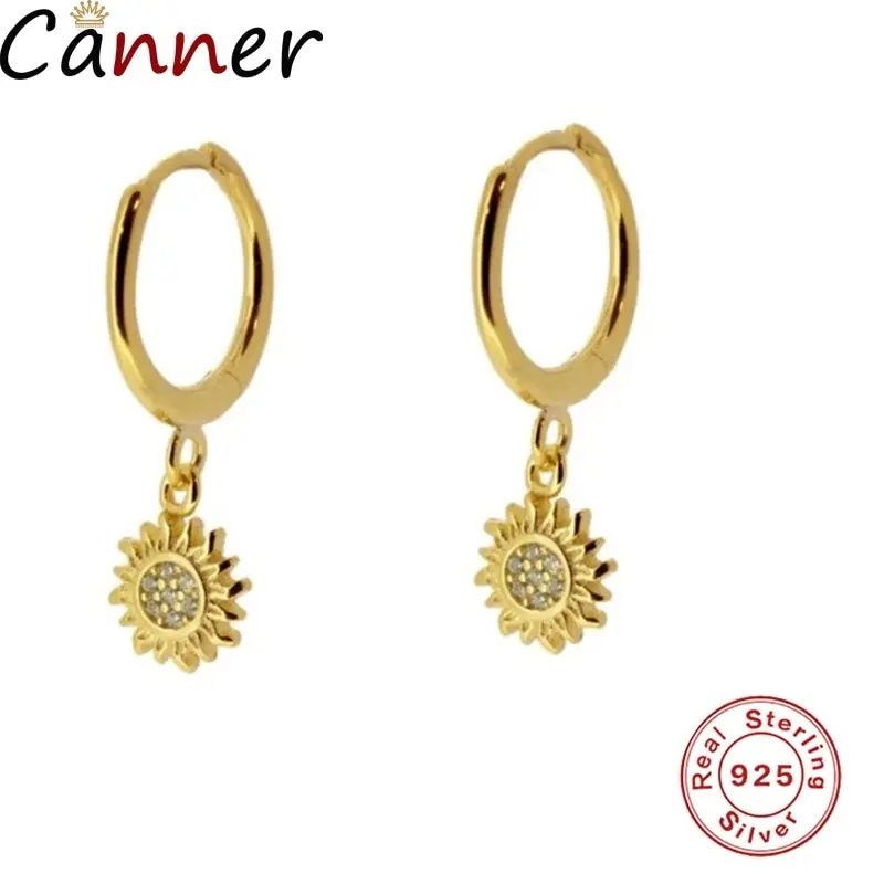 Элегантные женские круглые серьги-кольца с подсолнухом, новые модные серьги, ювелирные изделия, 925 пробы, серебряные висячие серьги