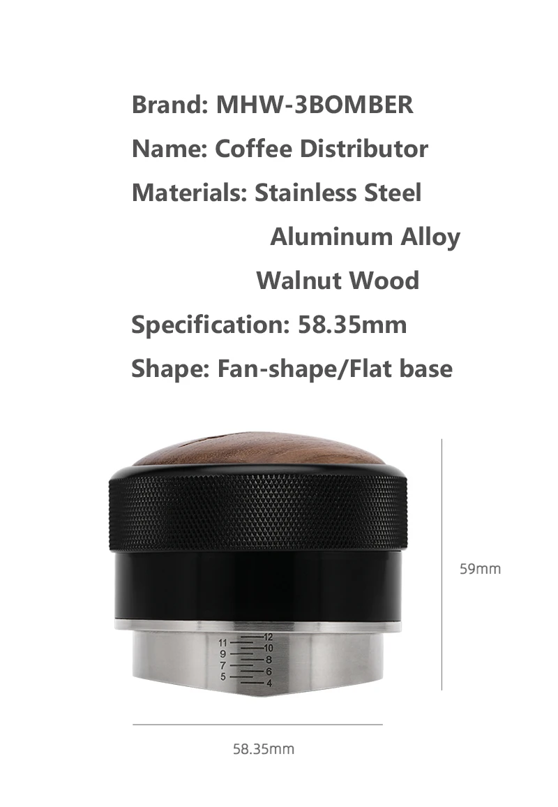 58,35 мм регулируемый кофе тампер орех деревянная ручка вентилятор/плоская основа порошок молоток эспрессо дистрибьютор аксессуар для бариста инструменты