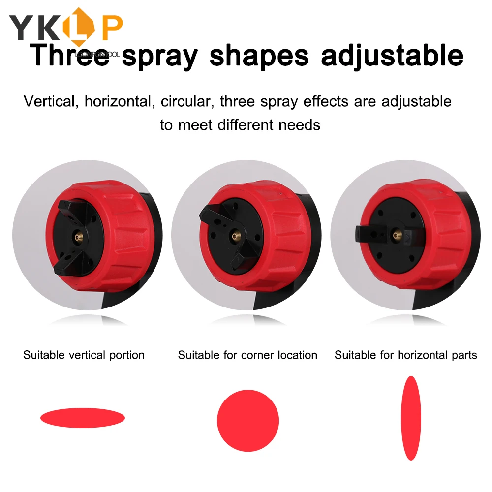 Три типа регулируемой формы распыления для удовлетворения различных потребностей, вертикальная форма подходит для горизонтальной поверхности объекта, Горизонтальная форма, подходит для вертикальной поверхности объекта, форма точки подходит для угла.