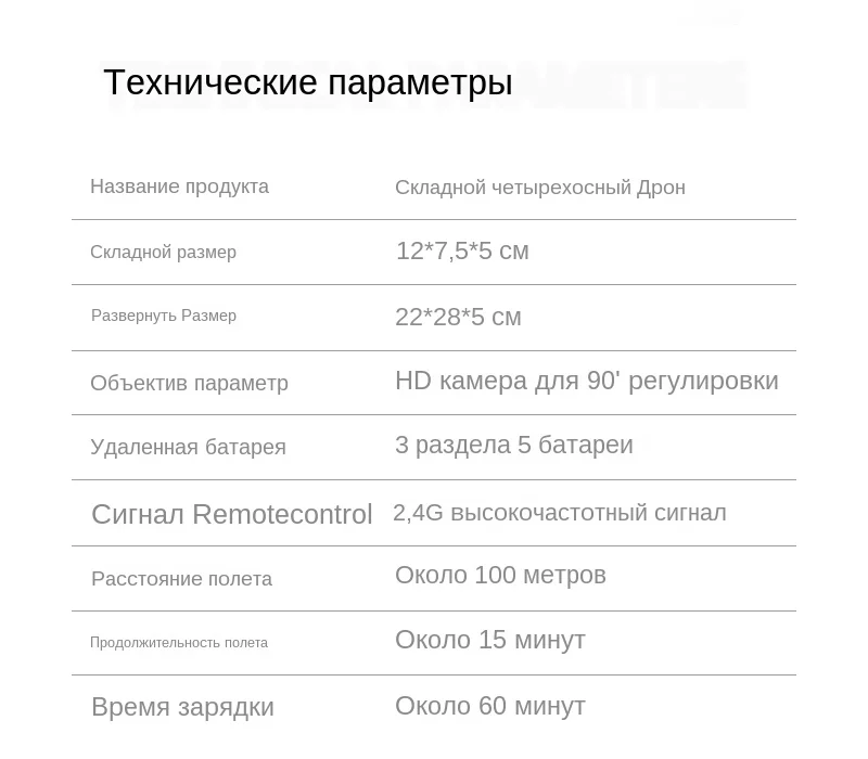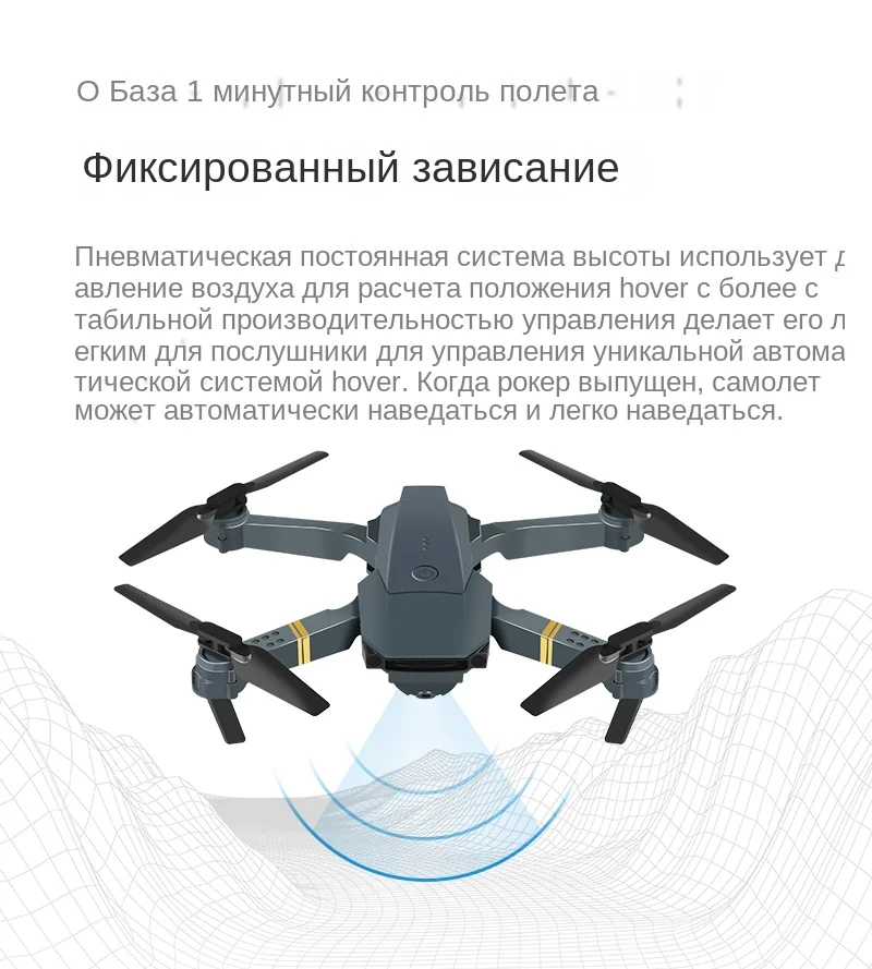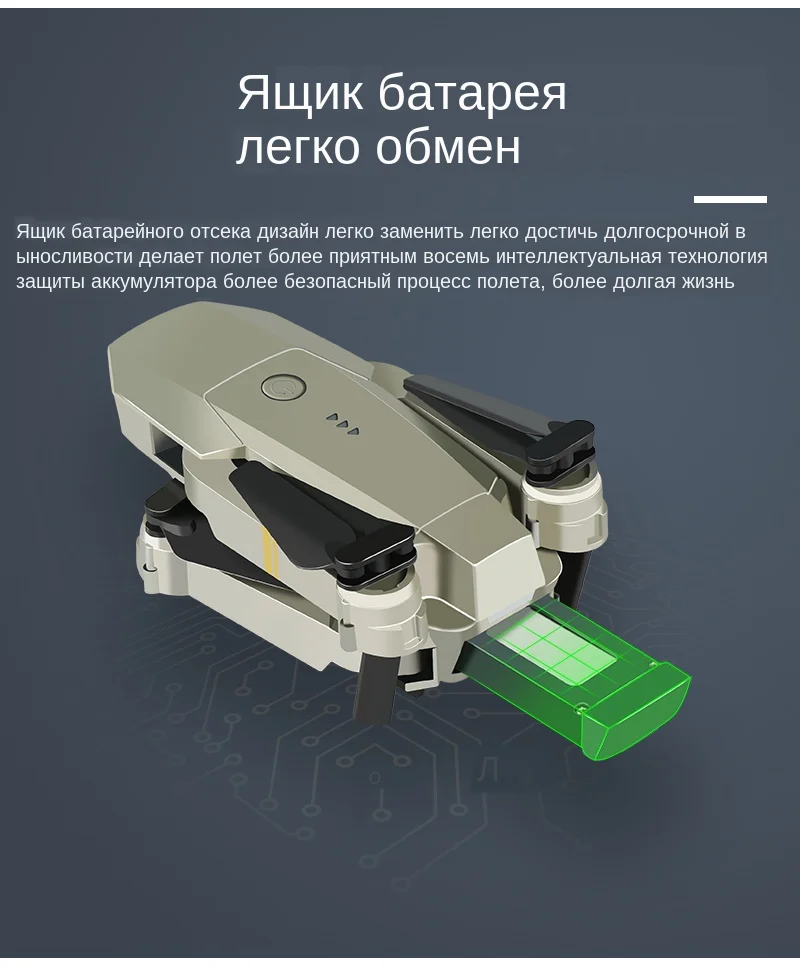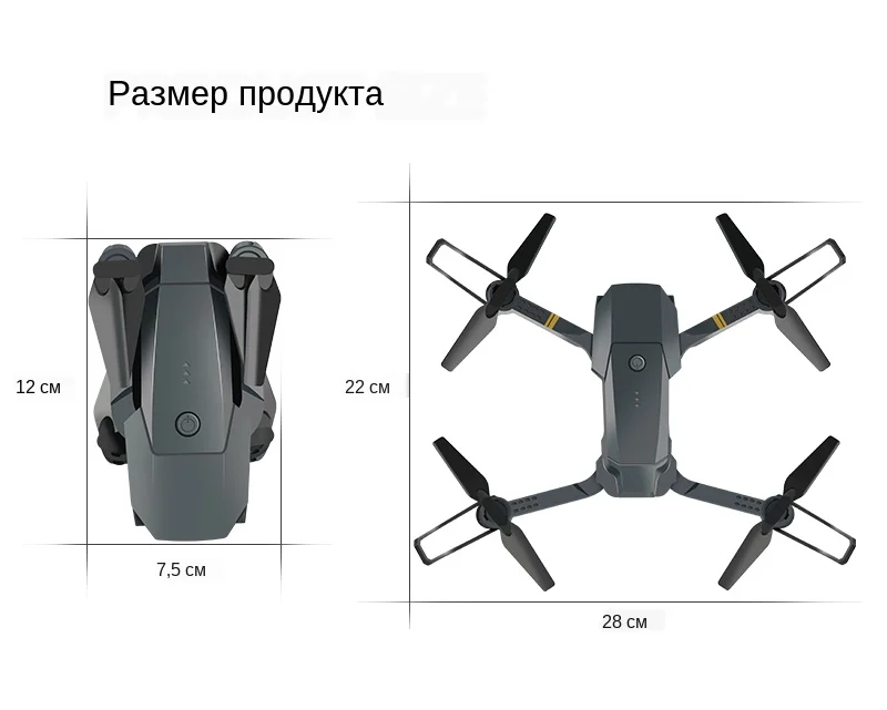 -С складными ручками, небольшой размер, легко носить с собой. -С функцией удержания высоты обеспечивает стабильный полет. -С Функцией Wifi может быть подключено приложение, система Apk для съемки, видео, передача в реальном времени через Изображение камеры телефона. -Есть 4 камеры на выбор. Широкоугольная камера 4k,5 МП, 720p, МП обеспечивает широкий диапазон высокого качества фотографий и видео. -С безголовым режимом, нет необходимости регулировать положение самолета перед полетом. -С помощью одной кнопки для возврата функция позволяет легко найти дорогу домой. -Технология 2,4 ГГц используется для защиты от помех. -4 канала, которые могут сделать подъем, спуск, вперед, назад, левая боковая муха, правая боковая муха и прокатка 360 °. -6-осевой гироскоп, который может иметь более стабильный полет и быть легко Управление. -Он имеет 3-х уровневый полета Скорость для переключения, которая может сделать больше удовольствия с летящим. -Квадрокоптер Fuselage изготовлен из высокопрочного и стойкого инженерного пластика, легкого и прочного сопротивления.