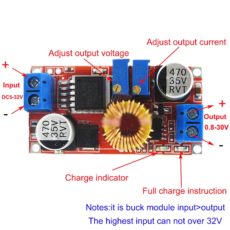 5А DC-DC постоянного тока для светодиодного драйвера литий-ионный аккумулятор источник питания ModuLe понижающий Тип
