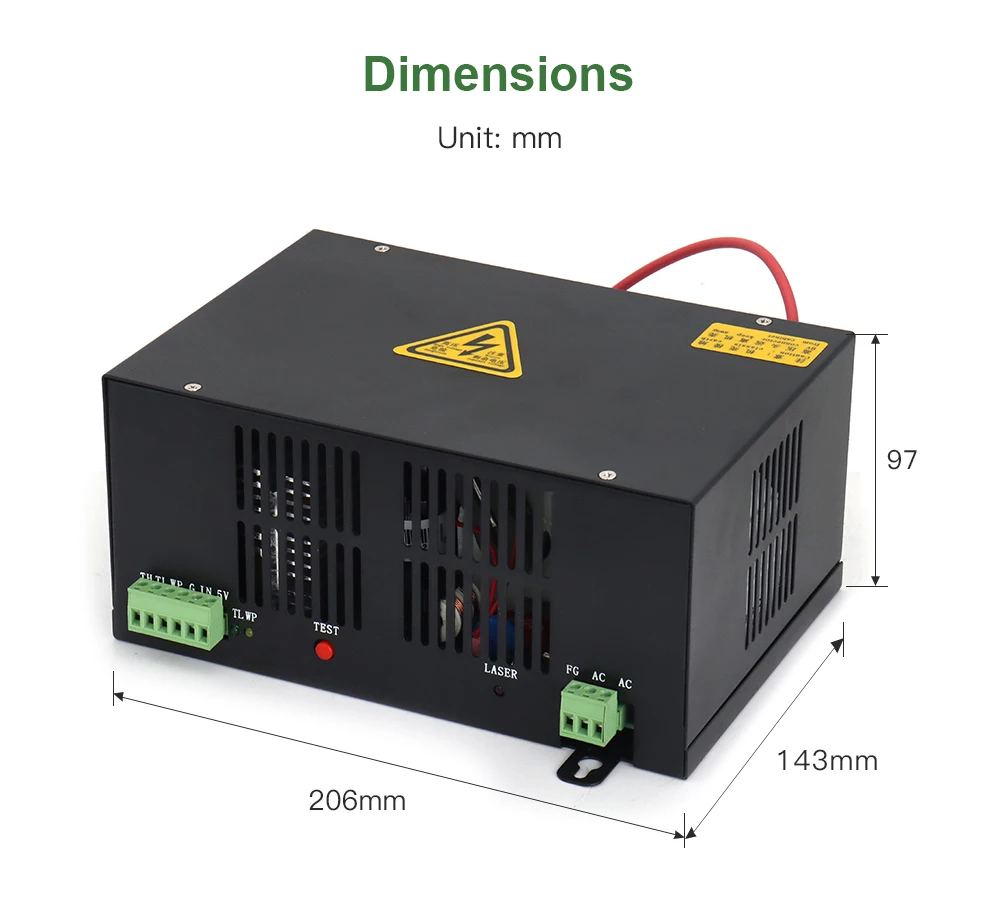 1. Хорошая совместимость: она может быть применима к 40 Вт, 50 Вт и 60 Вт лазерным Трубам