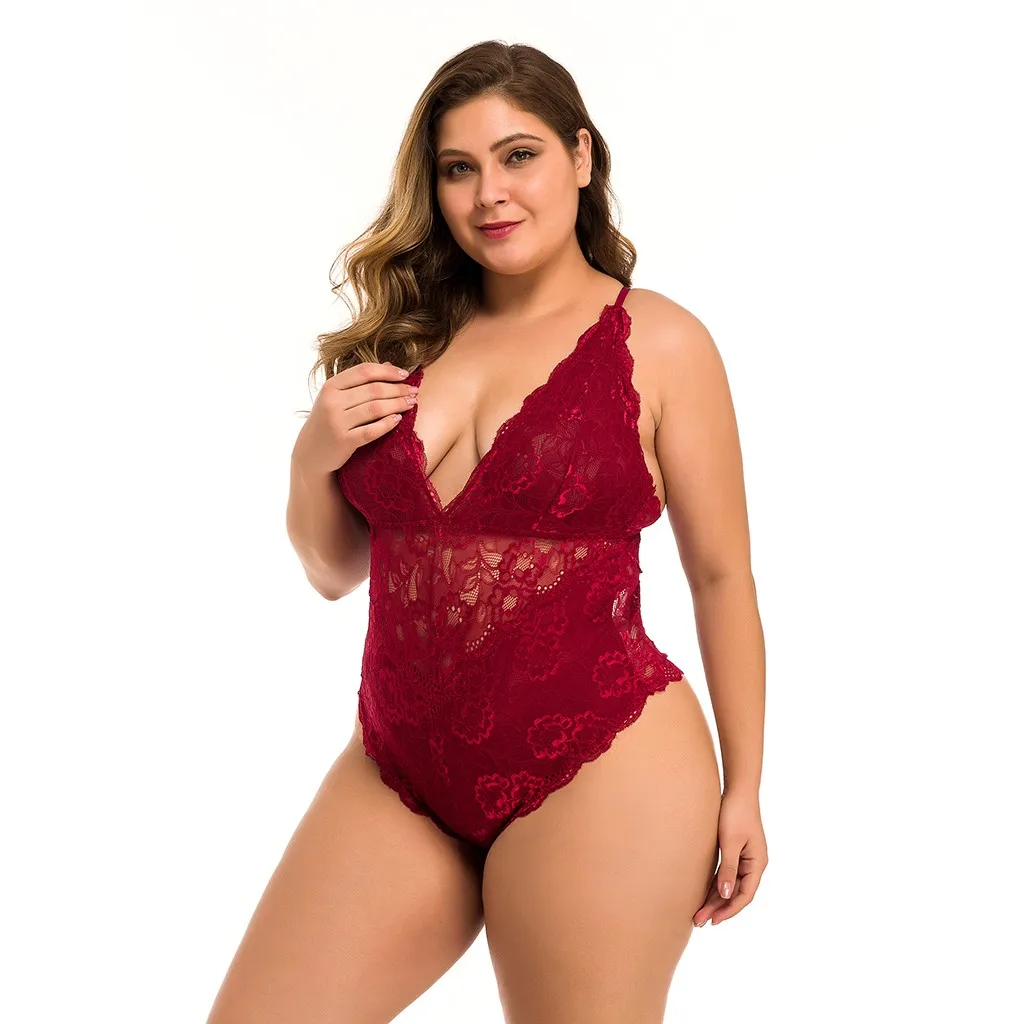 Новое Женское кружевное белье размера плюс с v-образным вырезом и открытой спиной, сексуальное белье, боди, одежда для сна, 1-4XL
