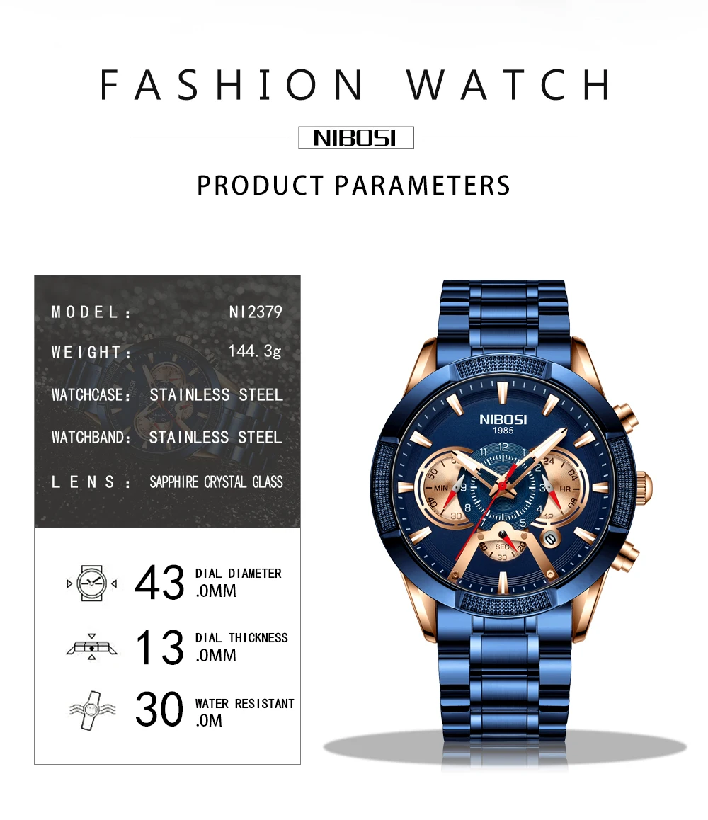 Мужские наручные часы NIBOSI, спортивные водонепроницаемые кварцевые часы с хронографом, военные часы, модель 2020