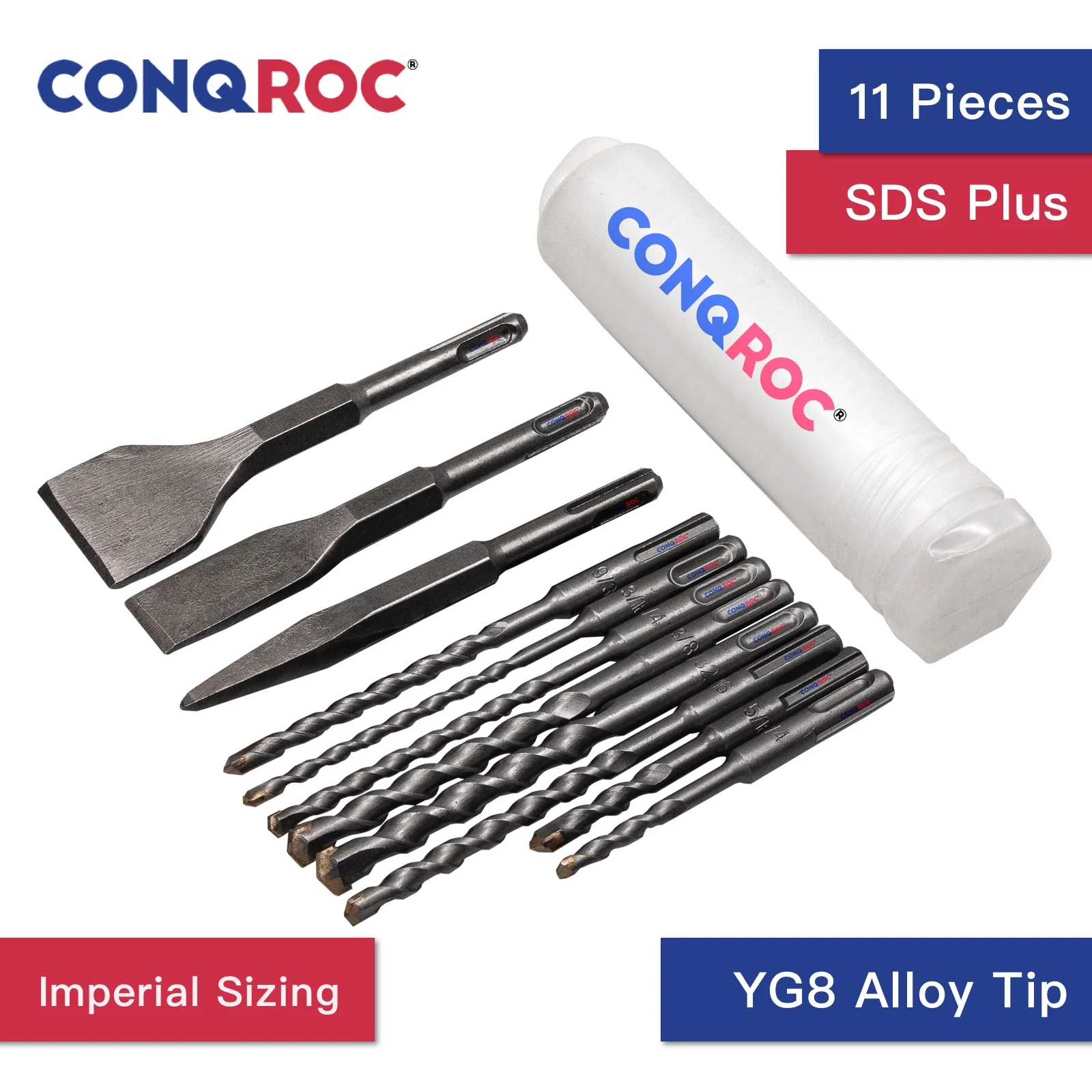 Набор сверл SDS Plus с твердосплавным наконечником для каменной кладки, набор долот для сверления гипсокартона, бетона, кирпича, 11 шт.