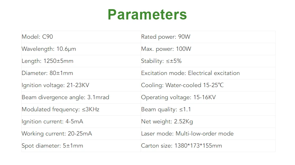 C коллекция CO2 лазерные трубки имеют высокое оптическое качество, сильную силу резания и высокую стабильность. Их передовая технология вакуумного покрытия еще больше улучшила мощность и срок службы лазерных трубок. Он также обеспечивает стабильные лазерные источники для высоковостребованных производителей лазерного оборудования.