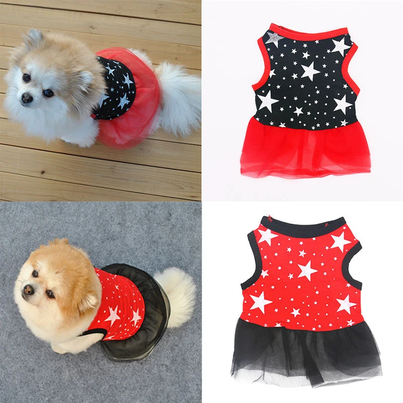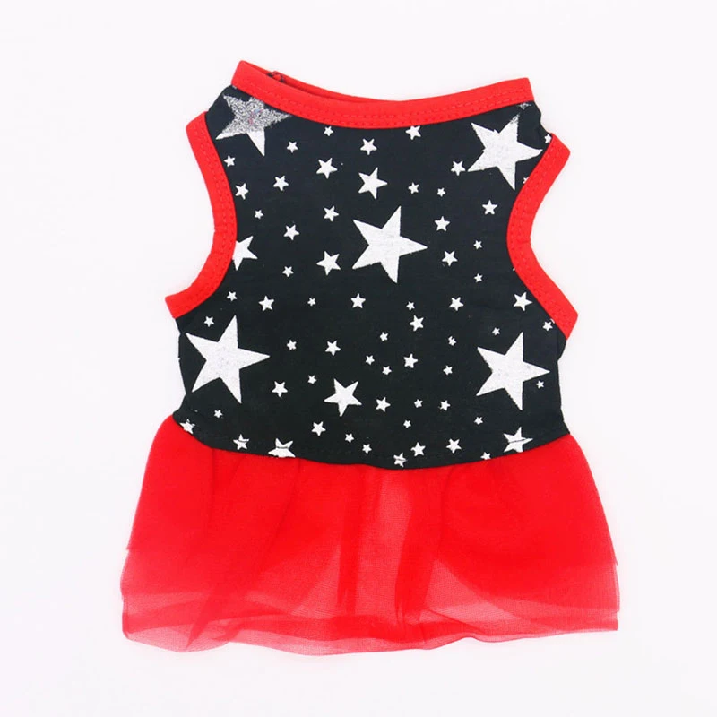 Платье для собак, милое Двухслойное кружевное платье с принтом звезды, красная одежда для маленьких собак