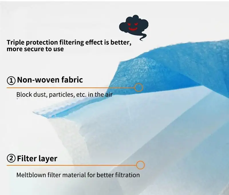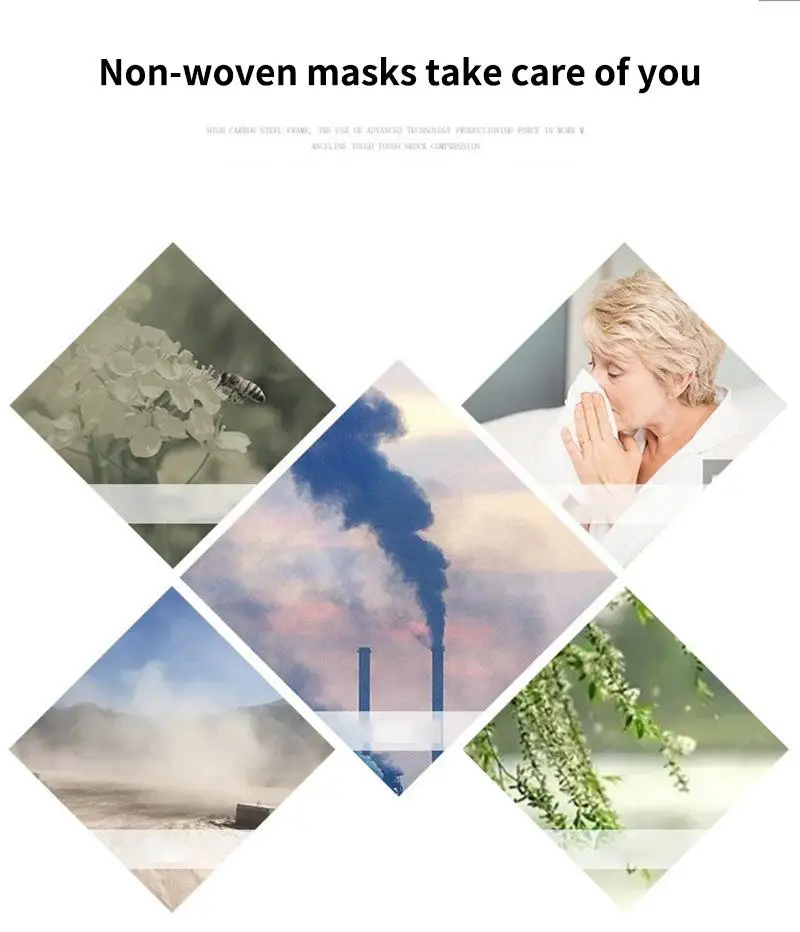 Особенности: Безопасный и дышащий. Чистый и полезный. Эластичные петли для ушей без давления на уши. Обеспечивают некоторую защиту от пыли или некоторых ядовитых вещей. Описание: Отлично подходит для деревообработки, уборки дома и общего обслуживания. Изготовлены из нетканого материала, они отличаются хорошей устойчивостью к коже и удобны в носке. Отличный выбор для вас или вашей семьи. Один размер подходит для большинства. Характеристики: Материал: нетканый Комплектация: 50 шт. маски для лица