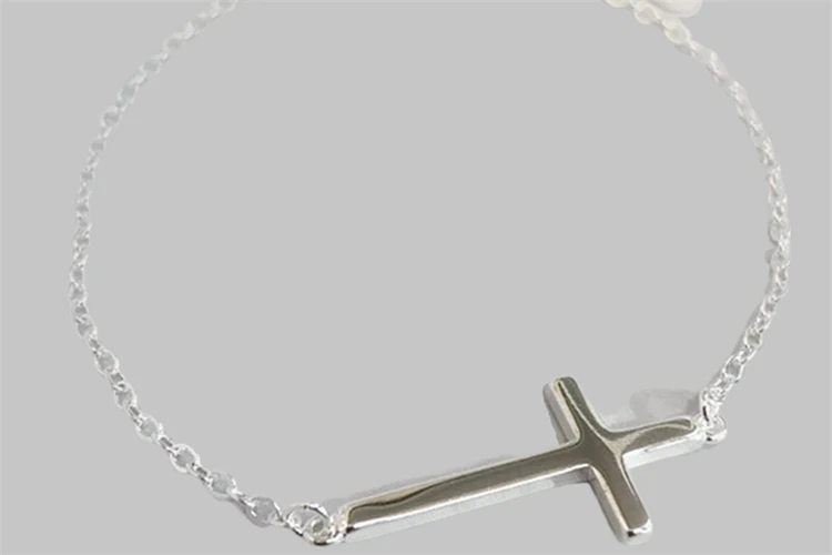 Простые классические корейские модные звенья цепи Иисус нарукавная повязка с крестом ювелирные изделия бохо 925 пробы Серебряный Бог браслет для женщин