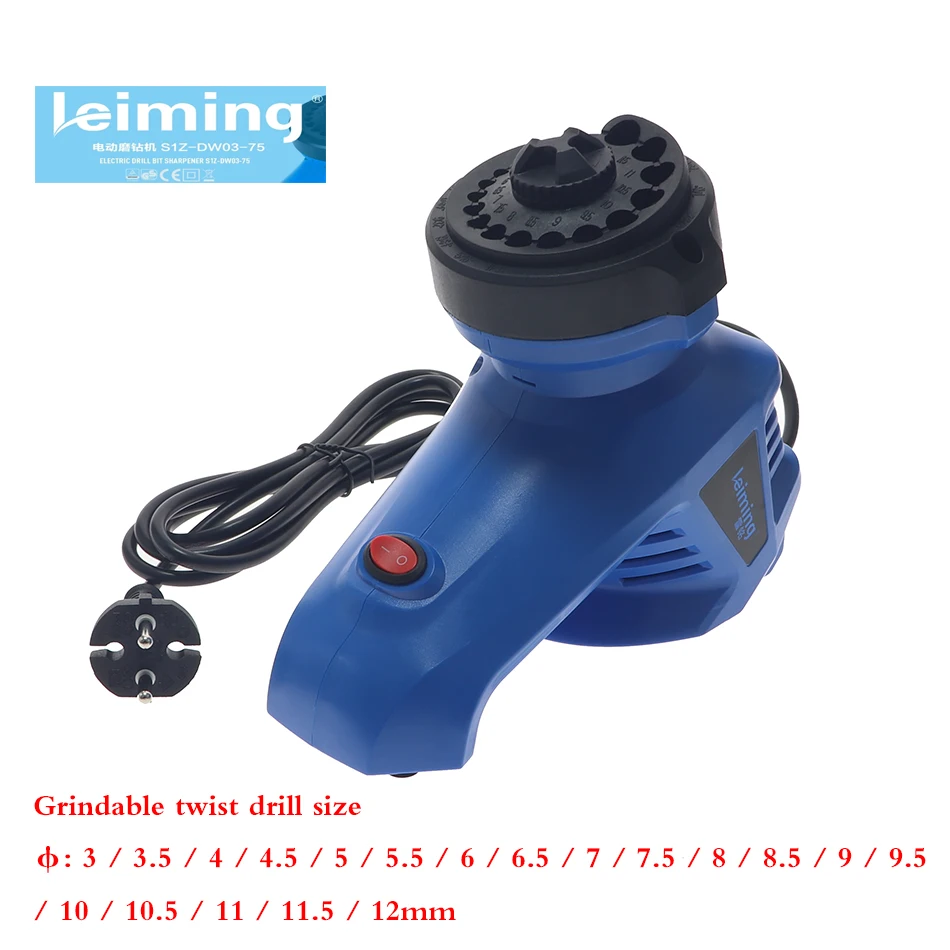 Описание продукта: Наименование: электрическая точилка для сверл Модель: S1Z-DW03-75 Технические характеристики Цвет: синий Напряжение: 110-240 В Частота: 50 Гц/60 Гц Номинальная мощность: 95 Вт Номинальная скорость: 1350 об/мин Работоспособность: 3-12 мм Класс защиты: II Короткое время работы: 3 минуты Особенности: -Доступный размер сверла от 3 мм до 12 мм. -1350 об/мин высокая скорость гарантирует эффективную работу. -Высокопрочная пластиковая оболочка обеспечивает долговечное использование. -Противоскользящие коврики помогают сохранить баланс. -Идеально подходит для сверления в дерево, металл, пластик и все винтовые задачи вождения Вы можете установить различные стандарты сверл в соответствии с потребностями. Примечание: сверла в комплект не входят