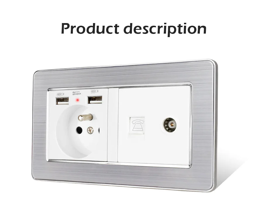 ESOOLI панель из нержавеющей стали французская стандартная розетка с 2 usb-портом для зарядки + 1 банда женский ТВ разъем RJ11 телефонный разъем