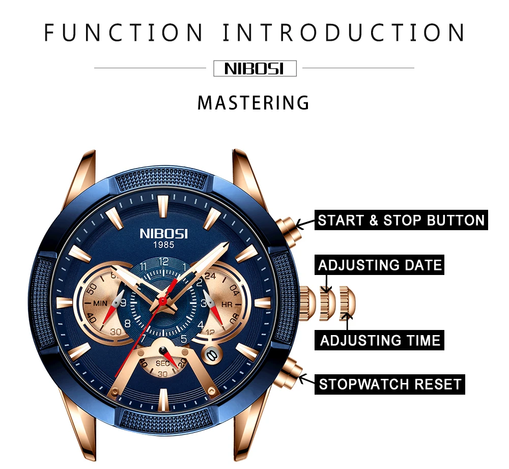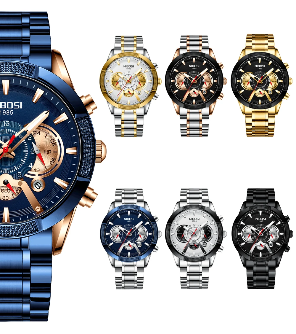 Relogio Masculino 2020 NIBOSI оригинальные мужские часы от ведущего бренда, роскошные модные мужские часы с большим циферблатом, водонепроницаемые, функция остановки