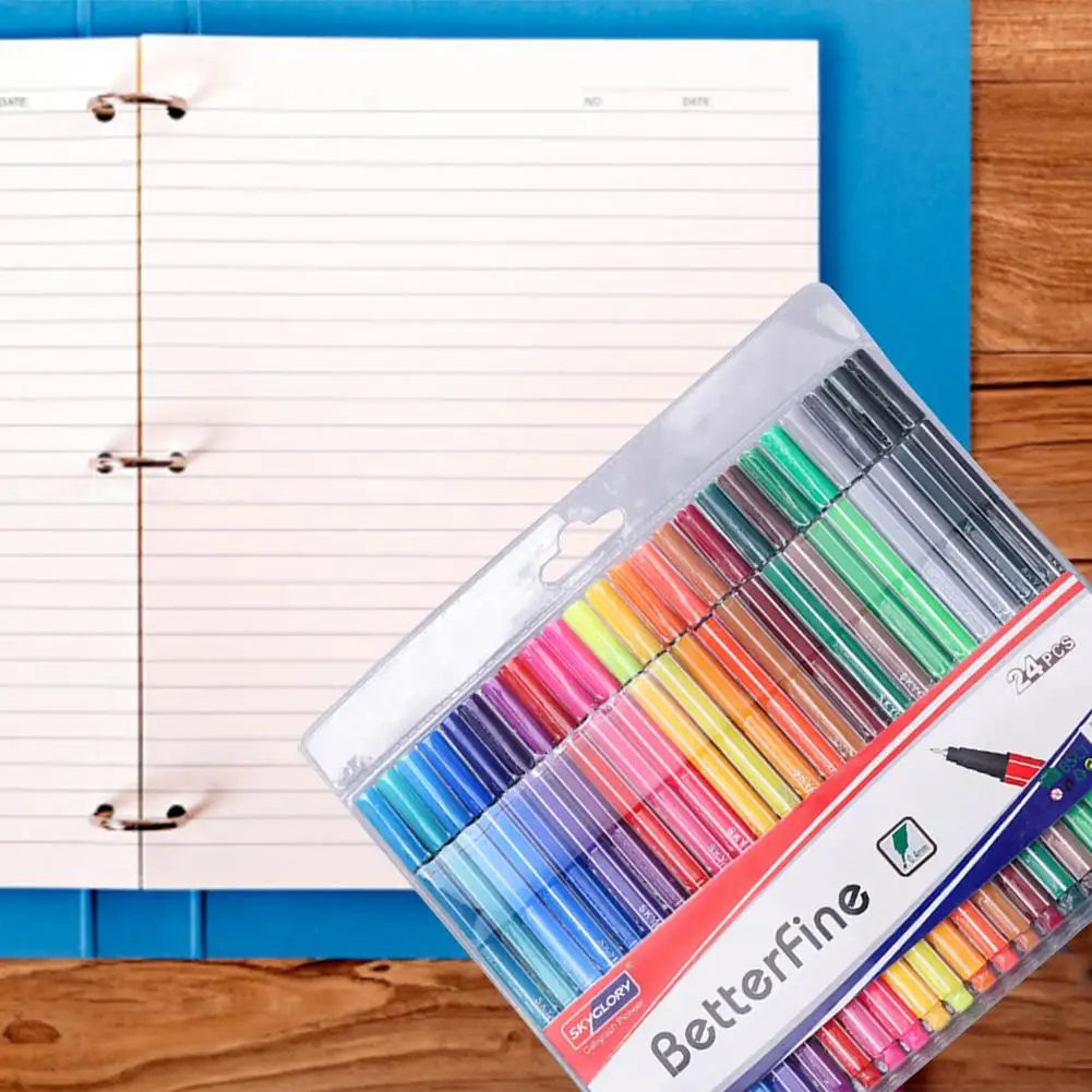 Превратить повседневные записи в 6/10/12/24 цветов с нашей тонко пишущие ручки. Побалуйте себя целым рядом быстросохнущих чернил на водной основе, которые не проливаются через бумагу.