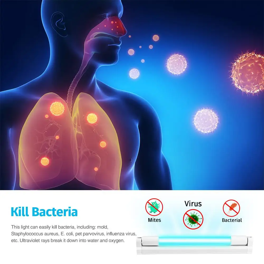 1. Пылезащитные клещи: пылевые клещи-это крошечные создания, которые невидимы невооруженным глазом. Они популярны на кроватях, подушках, диванах и коврах, и они повсюду в доме. Они вызывают много опасностей. Зуд и покраснение кожи делают людей не спящими и неудобными. UV-C лампы на сотни thm выше, чем солнечный свет, и они могут немедленно убить пылевые клещи.5.Несколько функций: подходит для семьи, спальни, кухни, ванные комнаты и т. д.