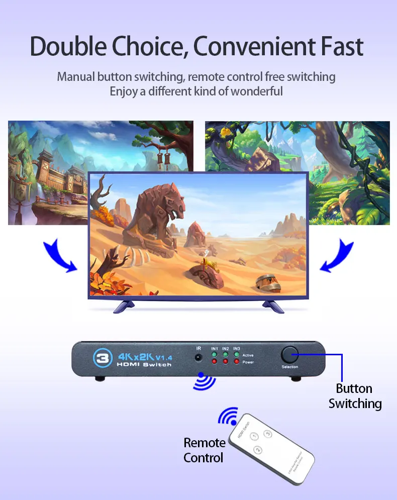 4 порта Hdmi переключатель 1080P HDMI коммутатор 3x1 3 в 1 выход 4K видео коммутатор коробка с концентратором ИК пульт дистанционного управления для ТВ ПК проектор