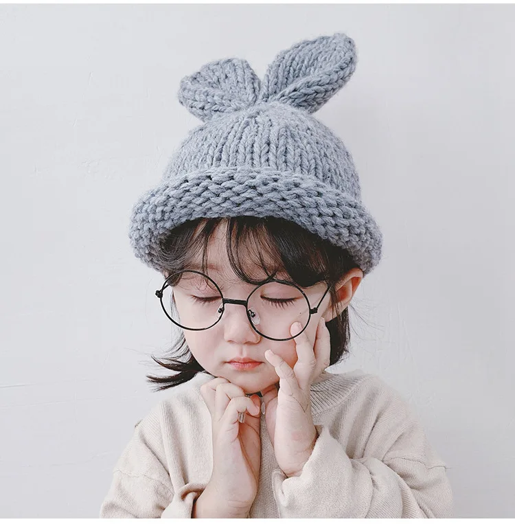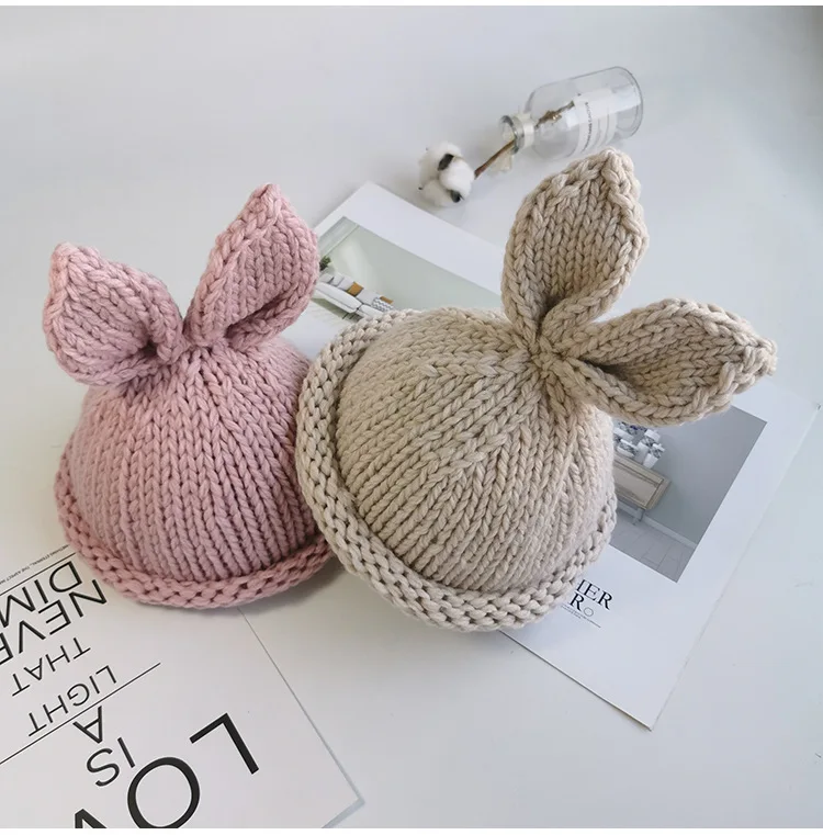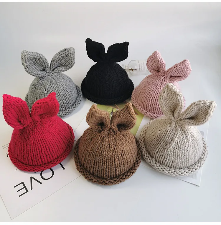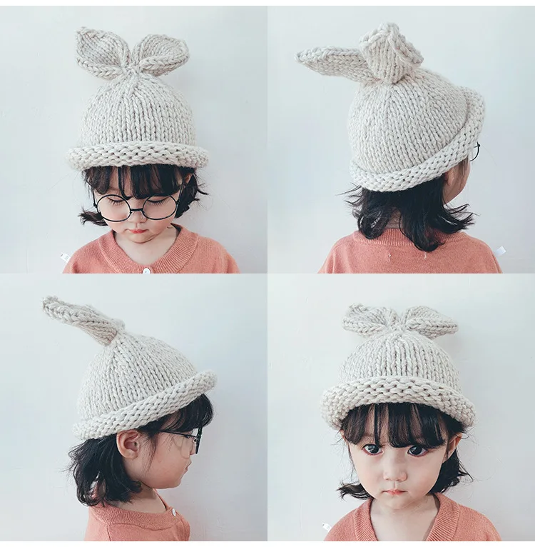 Детская Милая ручная работа Кролик уши шапка осень зима вязаные шапки для детей Кролик шапочки аксессуары реквизит для фотосессии