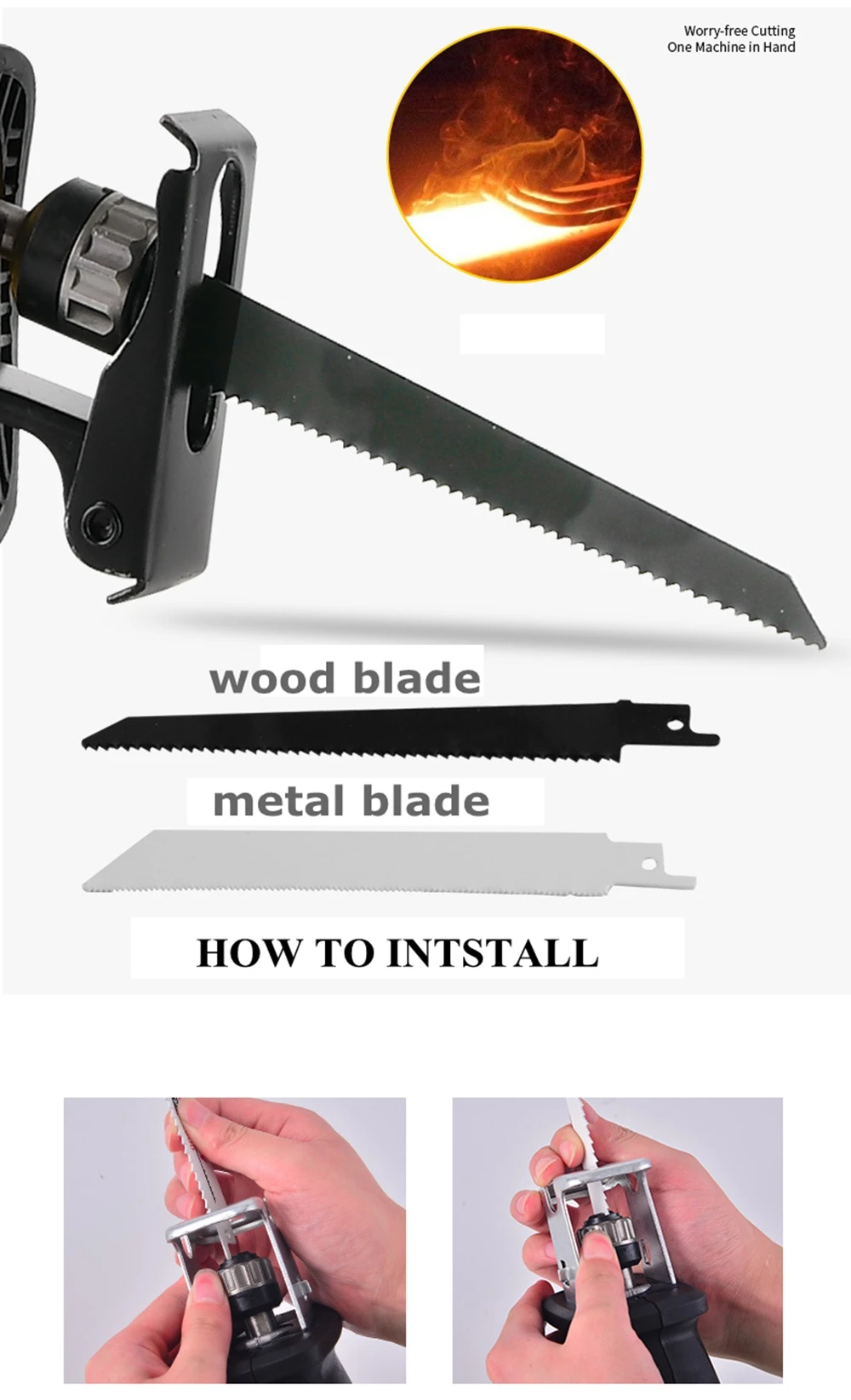 1000 Вт Мощный двигатель, высокая производительность резки. Замена пильного диска без инструментов (быстрая замена системы, быстрая замена лезвия). Шесть скоростей, для удовлетворения потребностей различных рабочих мест. Держатель лезвия SDS, для различных потребностей лезвия. Удобная и экономичная кнопка блокировки. Этот продукт подходит для: пиломатериалов, листового металла, труб, профилей или резки скобы на стальной трубе, а также кабеля для резки или других неметаллических материалов. Помните, что распиловка различных материалов, вам нужно изменить соответствующее лезвие.