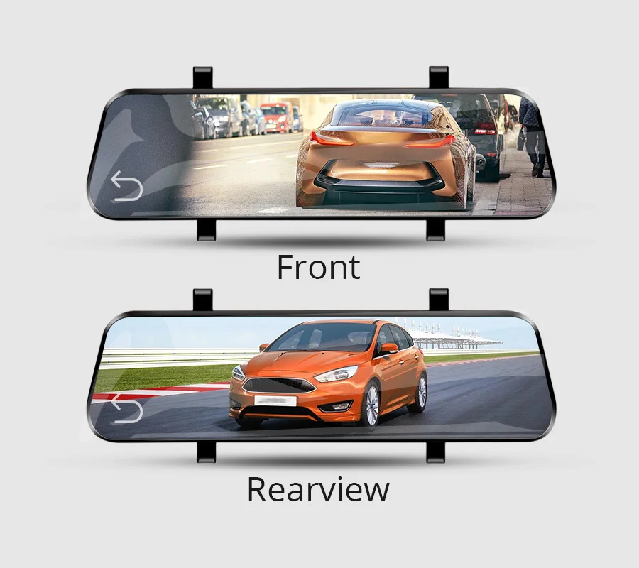 1:1 дизайн разделенного экрана для переключения записи переднего и заднего вида, большого экрана и чёткости и ersily для проверки заднего вида. Сенсорный экран для переключения на переднюю камеру, заднюю камеру.