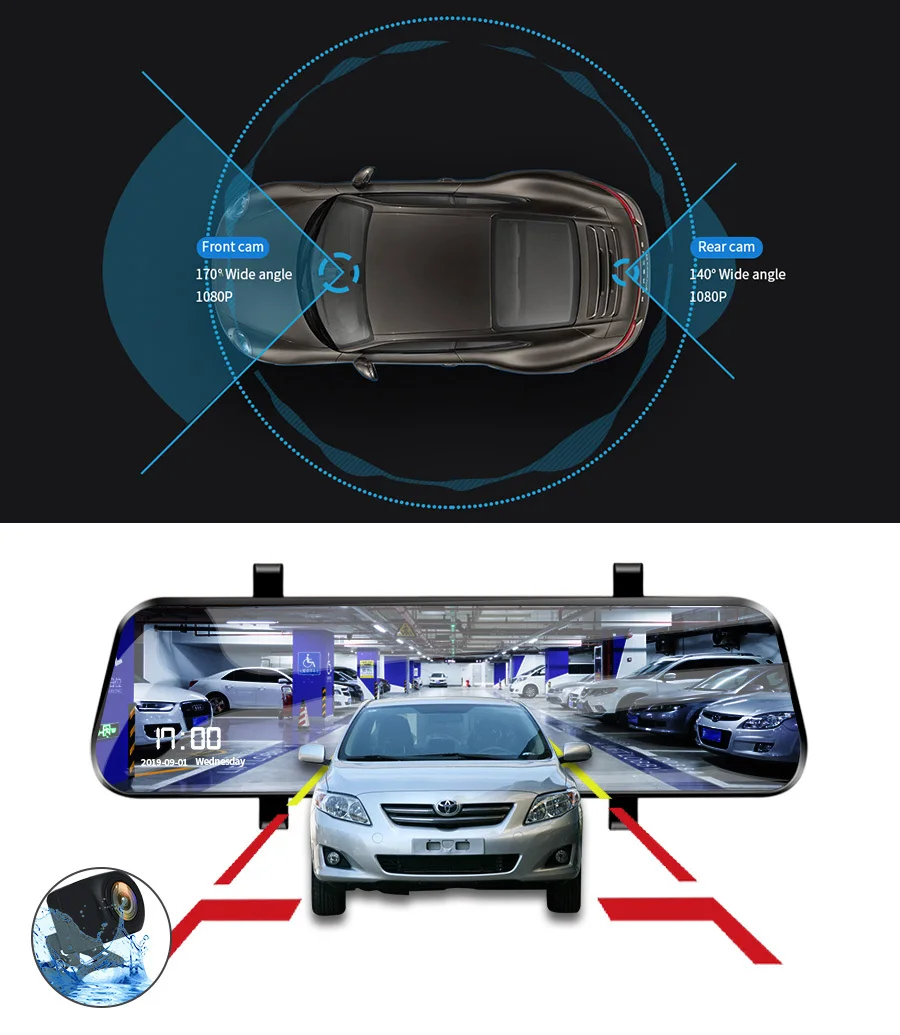Это новая технология для зеркала заднего вида dvr.D13 оснащен этой передовой технологией потокового мультимедиа, делает угол заднего вида более широким, это тройной широкий угол обзора, а затем традиционное зеркало.