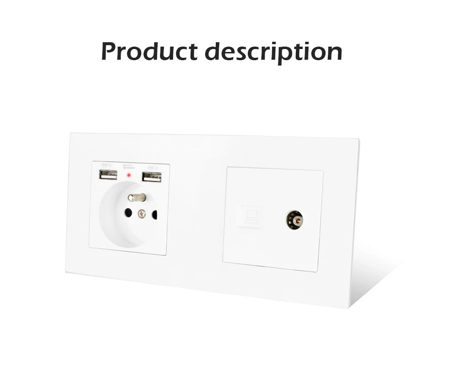 Esooli пластиковая панель, французский стандарт, электрическая розетка с 2 USB + RJ45, разъем для интернет-компьютера и женский ТВ-разъем 172*86 мм
