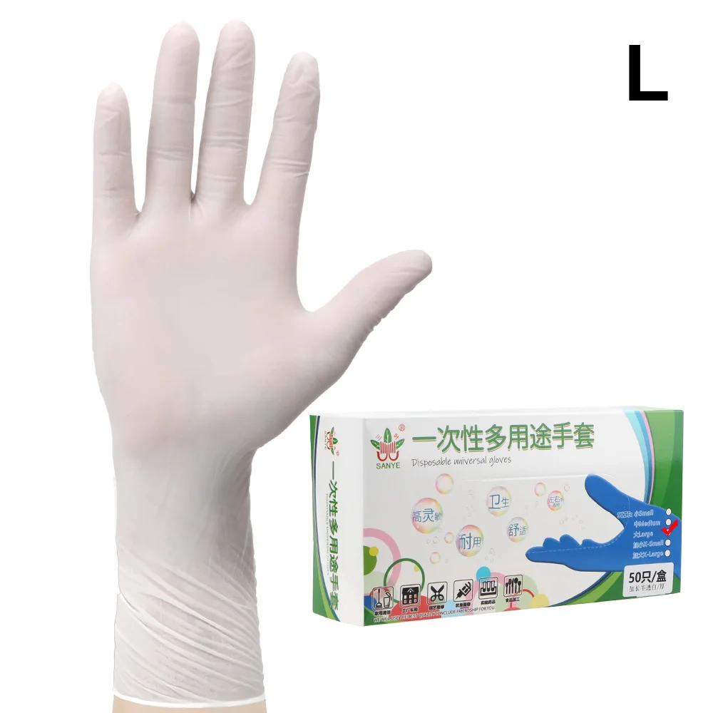 Особенности: Хорошая эластичность, пять раз растягивается.Сопротивление проколу, обновление утолщения.Одноразовые домашние перчатки изготовлены из нитрилового каучукового материала, высокого качества, нетоксичные, стерильные, здоровые в использовании.Без пластификатора, без эфира, без силиконового масла, без порошка.Разумная толщина, хорошее ощущение касания, хорошая гибкость, кислота и щелочь, маслостойкость, анти бактерии.Идеально подходит для домашней уборки, санитарного осмотра, пищевой промышленности, химической промышленности и т. Д.Технические характеристики: Цвет: белыйРазмер: S, M, LМатериал: бутадиен-нитрильный каучукПакет включает в себя: 50 шт./кор. одноразовые перчатки