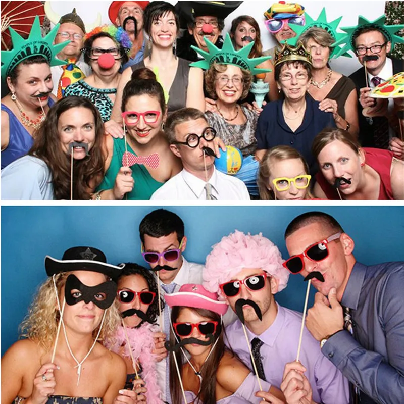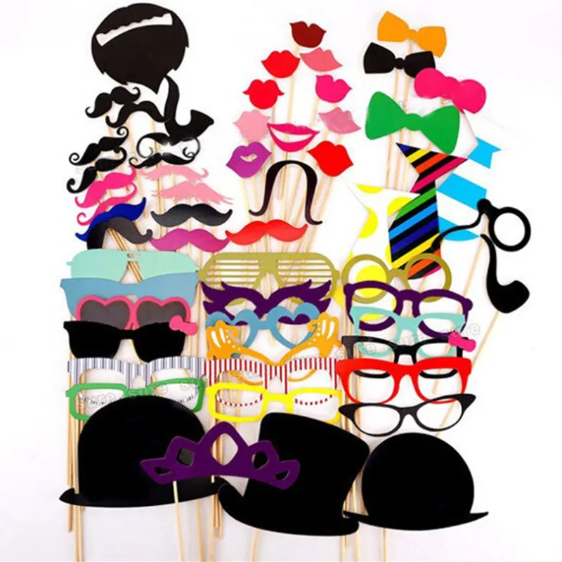 58 шт., реквизит для фотобудки, очки, усы, губа на палочке, день рождения, невесты, свадебные украшения, аксессуары для вечеринки, забавная маска