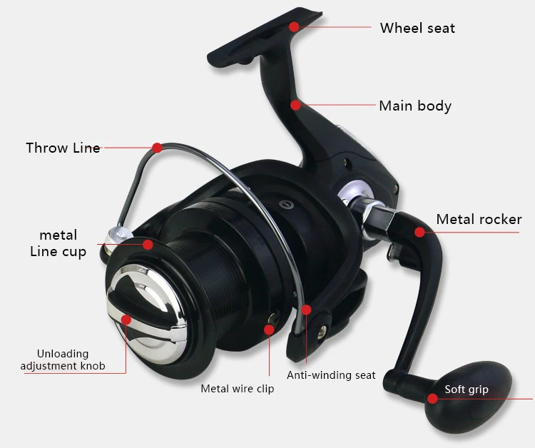 Дальнего бросали колеса, PA66 в виде рыбок, пластиковая наживка корпуса судна, металлическая шпуля, полностью Металлическая Складная рукоятка встряхнуть может быть взаимозаменяемы левые и правые, без зазора структурой. С пластиковой запасной ролик лескоукладчика. Нержавеющая сталь подшипника + односторонний подшипник, нержавеющая сталь подшипники и компоненты, супер механическая стойкость к коррозии. Крепкий корпус, обжигательная печь и сильным работоспособность.