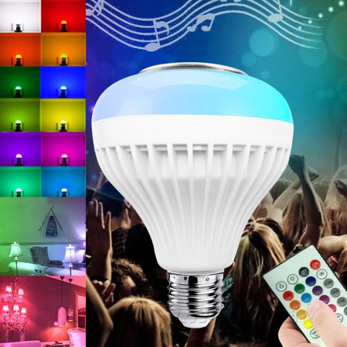 Подключите лампу к смартфону или планшету по bluetooth, после чего вы услышите музыку, воспроизводемую в красочных лампах.