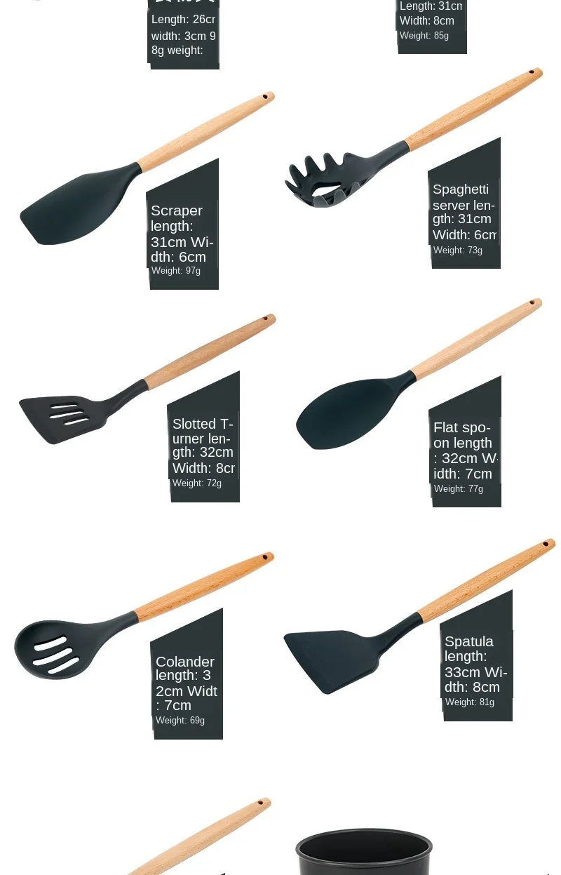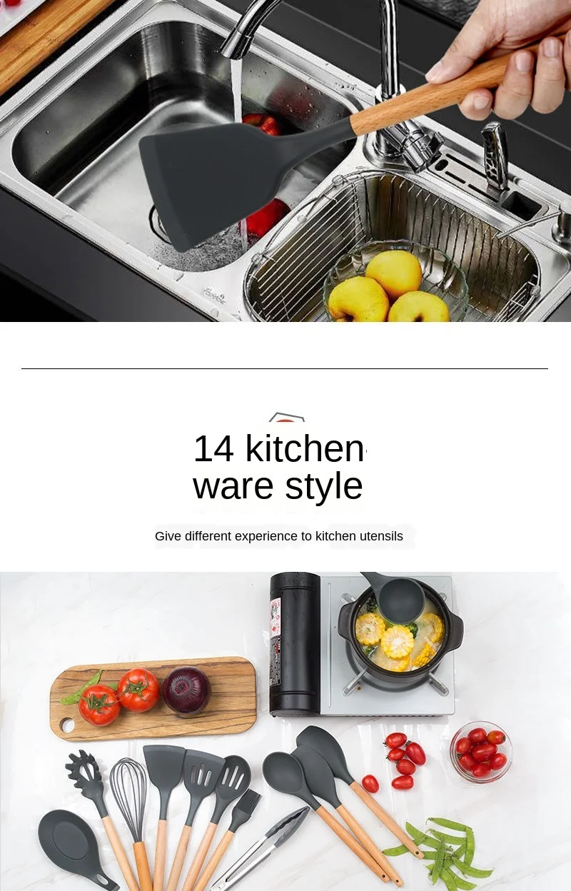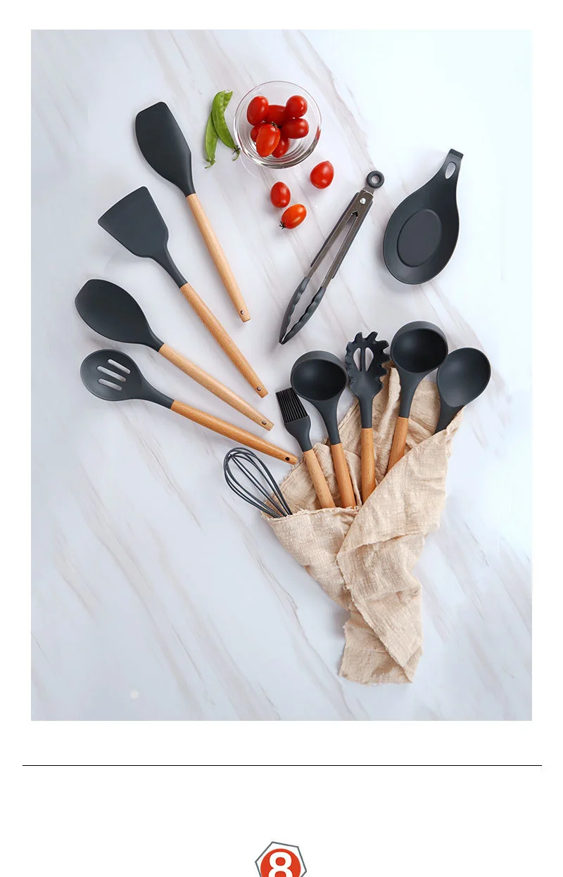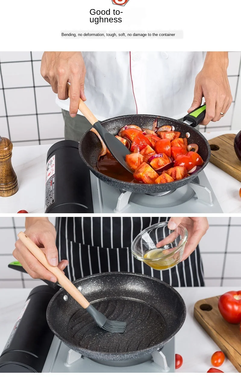 Изделие: набор кухонной посуды из силикагеля с деревянной ручкой