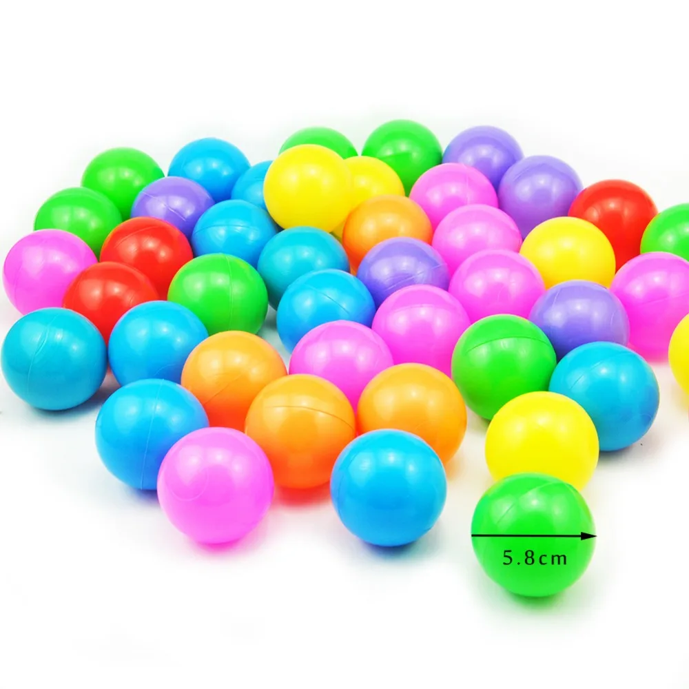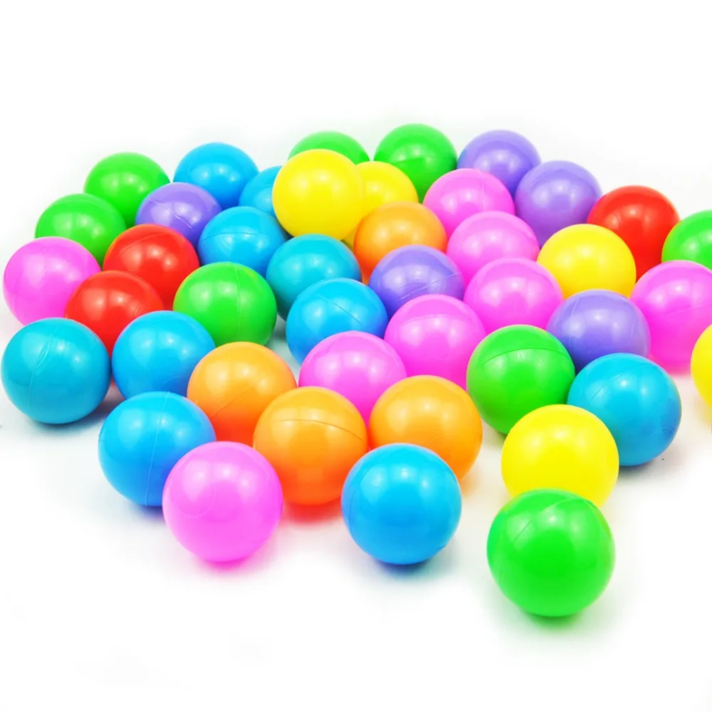 Product Feature: This style is unique and pretty . It is beautiful and fashion . Play this balls with tent, very happy. It will not hurt your kids. High quality material, Safe and reliable, non-toxic, no smell. The perfect toy for your kids. Size: 5.5cm (2.16 inch)(approximately) Color: Seven color mixture The Material of Ball: Plastic PE Age Range: 0-10 kids Package included: 50/100pcs × Ocean Balls