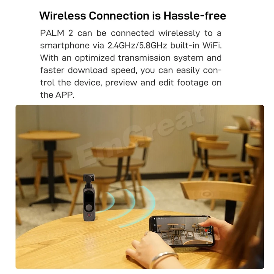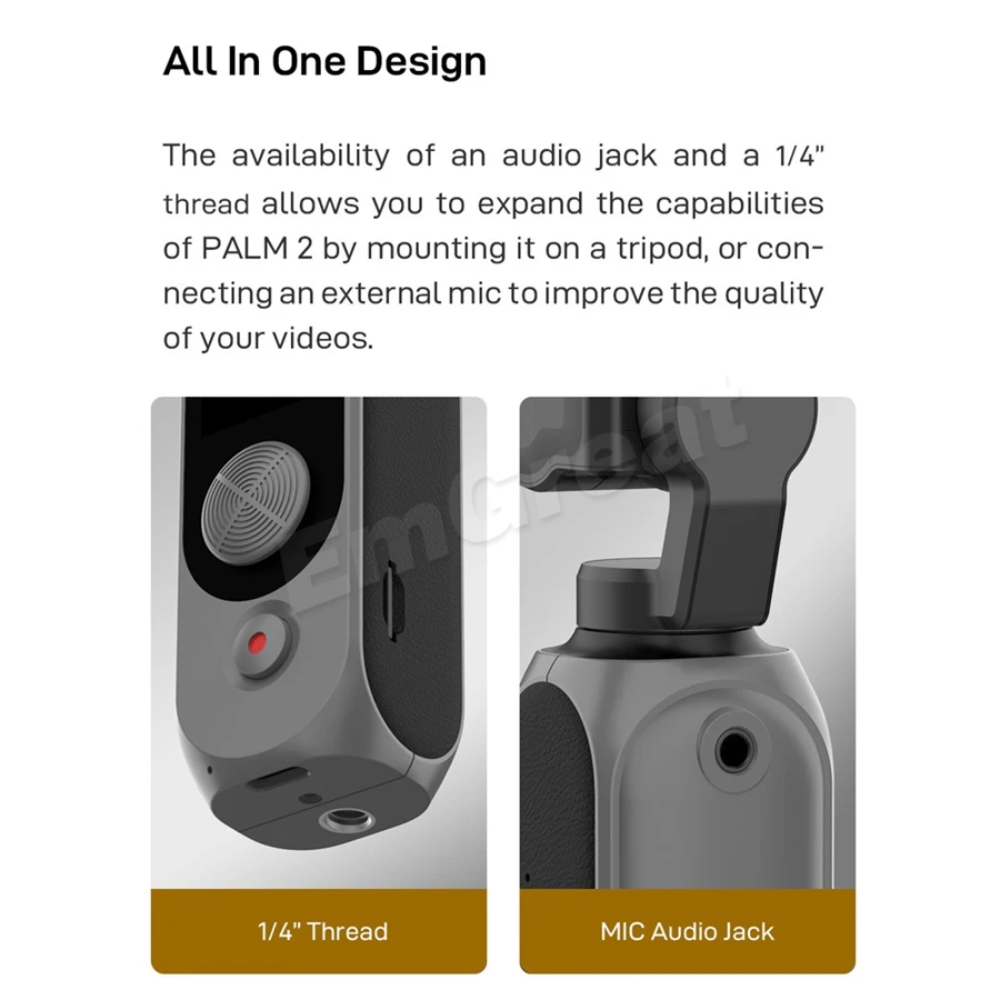 FIMI Палм 2 Gimbal камера 4K 100 Мбит/с стабилизатор 308 мин Батарея снижение уровня шума микрофон распознавание лица умный трек