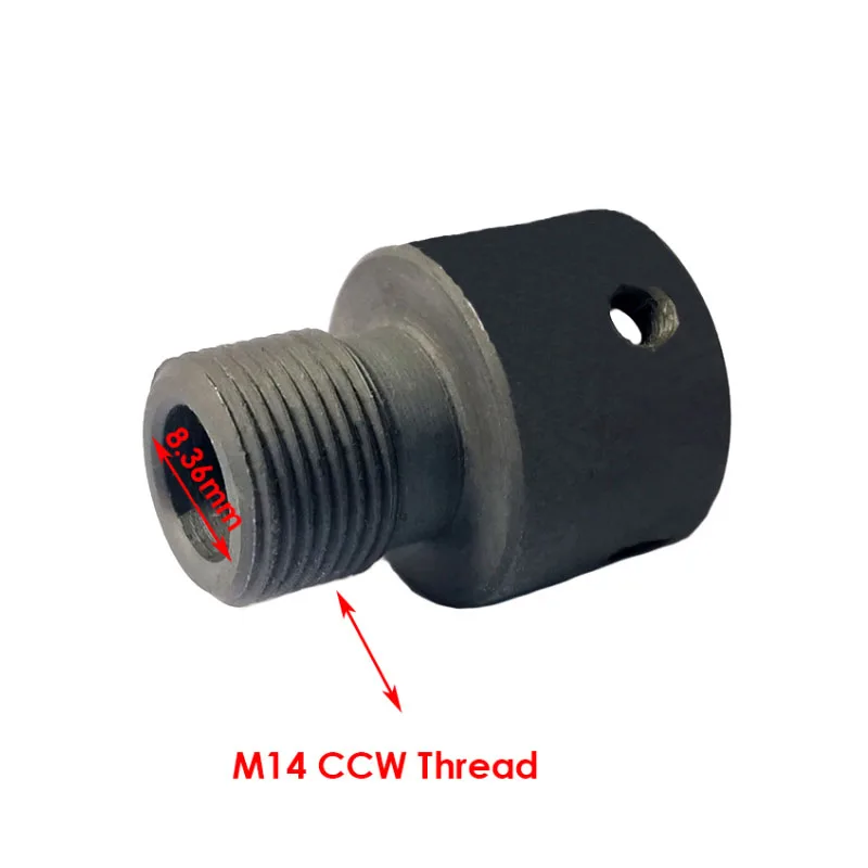 Этот адаптер крепится к AK или SKS четырьмя установленными винтами M14 x 1 левая рука AK/SKS Резьбовой Адаптер Русская 14 мм обратная резьба Внешняя резьба: 14 мм Вся стальная конструкция