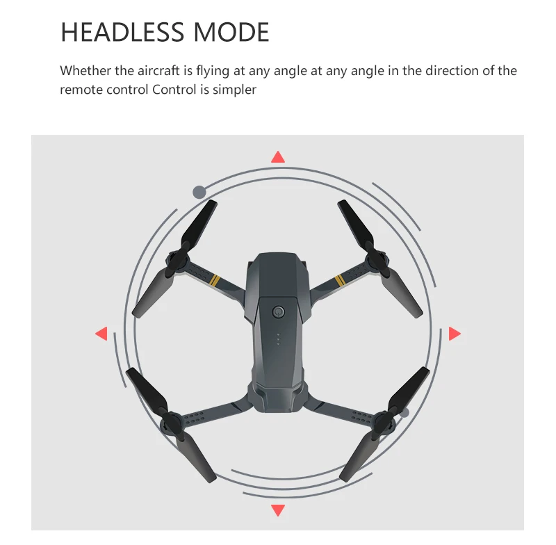 Item NO.: E58 Frequency: 2.4G Channel: 4ch : 6 Quadcopter Battery: 3.7V 500mAh Lipo (Included) Transmitter Battery:3 x 1.5 AA battery (NOT Included) Charging time: 60-70mins Flying time: 7-9mins Drone Weight : 94.8g (with Battery) R/C distance: 80-100m Color: Black Camera: 2MP 720P wide angle, 0.3MP (Optional) Quad's size: 27x19.5x5cm (the arms not folded) 12.5x7.5x5cm (the arms folded) universal Package Size: 17.5x16x7cm Package weight: 360g Features: - With foldable arms, small size, easy to carry. - With altitude hold mode function provides stable flight. - With wifi function can be connected APP, APK system to take pictures, video, real-time transmission through the phone camera image. - There have 2 cameras can be choose. With 2.0MP 720P wide angle camera give wide high denfinition pictures and video. - With Headless Mode,no need to adjust the position of aircraft before flying . - With One key to return function makes it easily to find the way home. - 2.4GHz Technology Adopted for Anti-Interference. - 4 Channel which can do ascend, descend, forward, backward, left sideward fly, right sideward fly and rolling 360°. - 6- which can have more stable flying and be easy to control. - It have 3-level flight speed to switch that can make more fun with the flying. - The quadcopter fuselage is made of high strength and resistant engineering plastics,lightweight and durable resistance. Function: Up/down, Forward/backward, Turn left/right, Sideward flight, 3-level flight speed, LED Light, Headless Mode, One Key Automatic Return, Altitude Hold Mode, WiFi FPV Package Included: 1 x Eachine E58 RC Quadcopter 1 x Transmitter 1 x 3.7V 500mAh Lipo Battery (Can be choose the battery quantity when order) 1 x USB Charging Cable 4 x Protection Cover 4 x Spare 1 x screwdriver 1 x User Manual