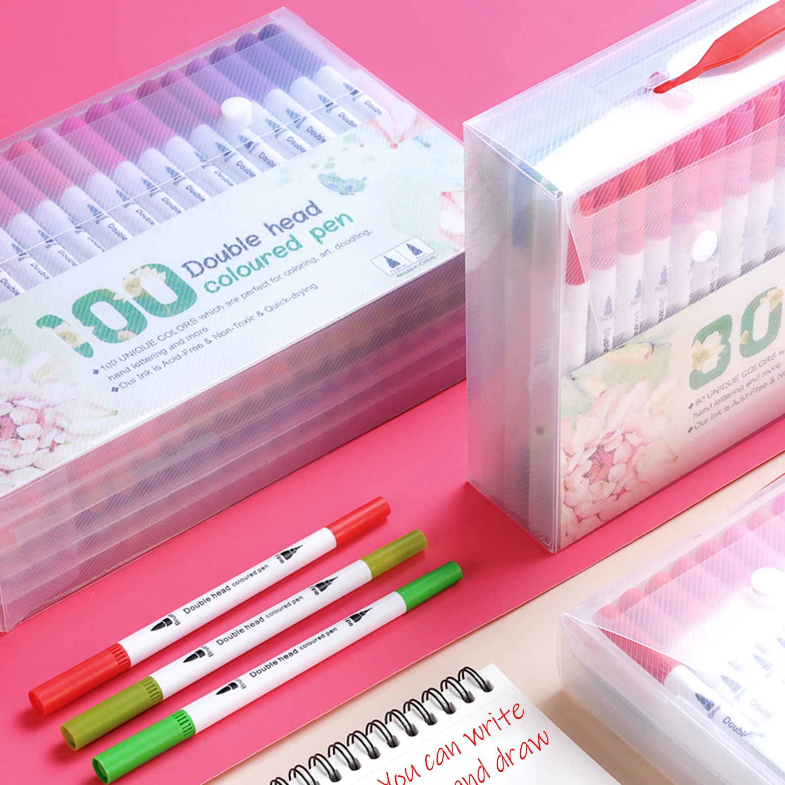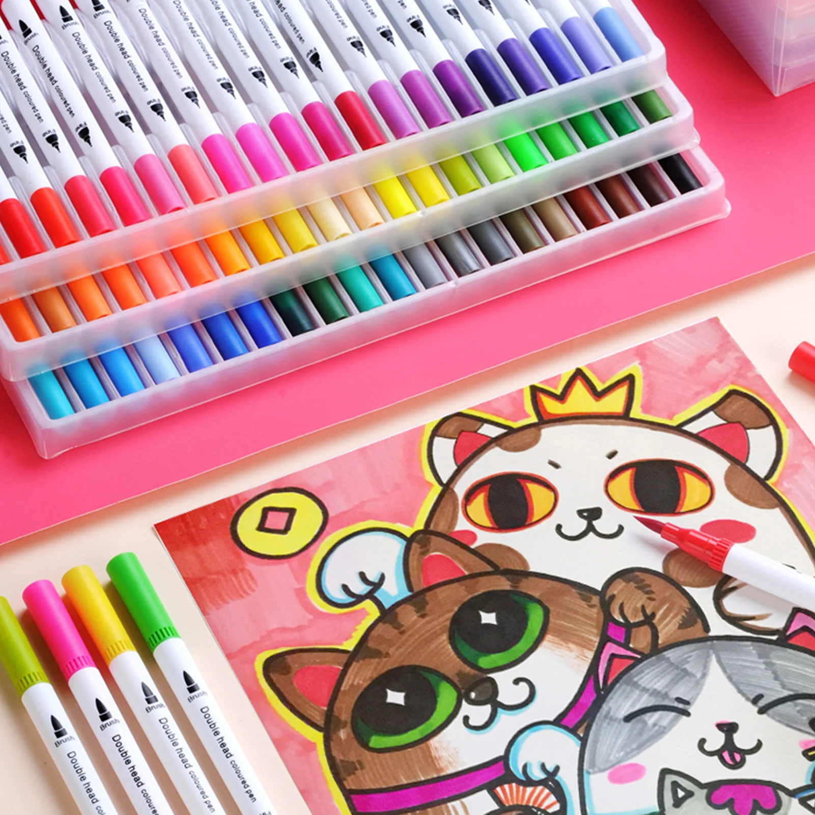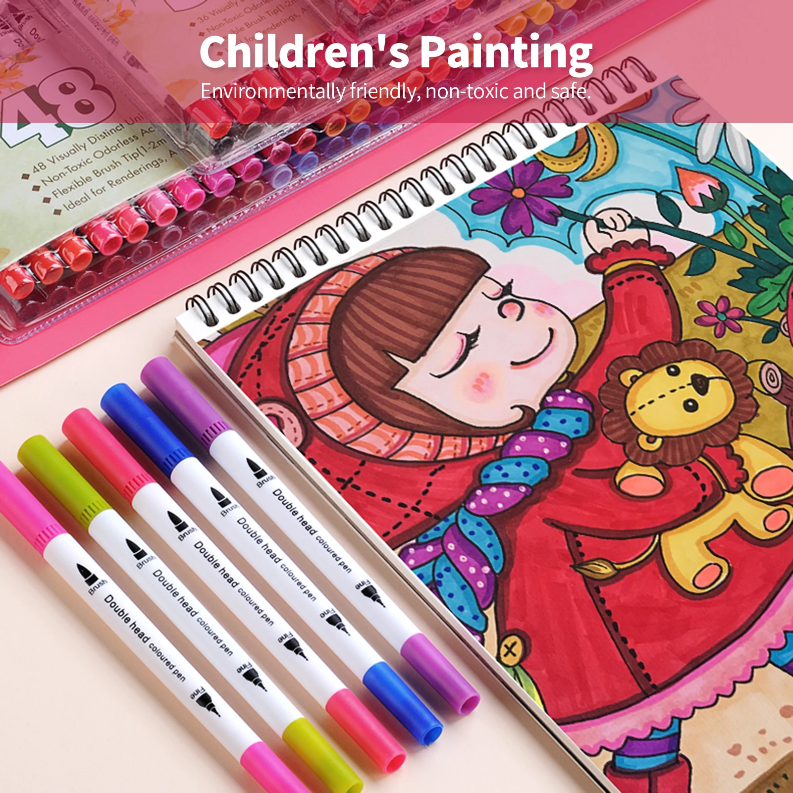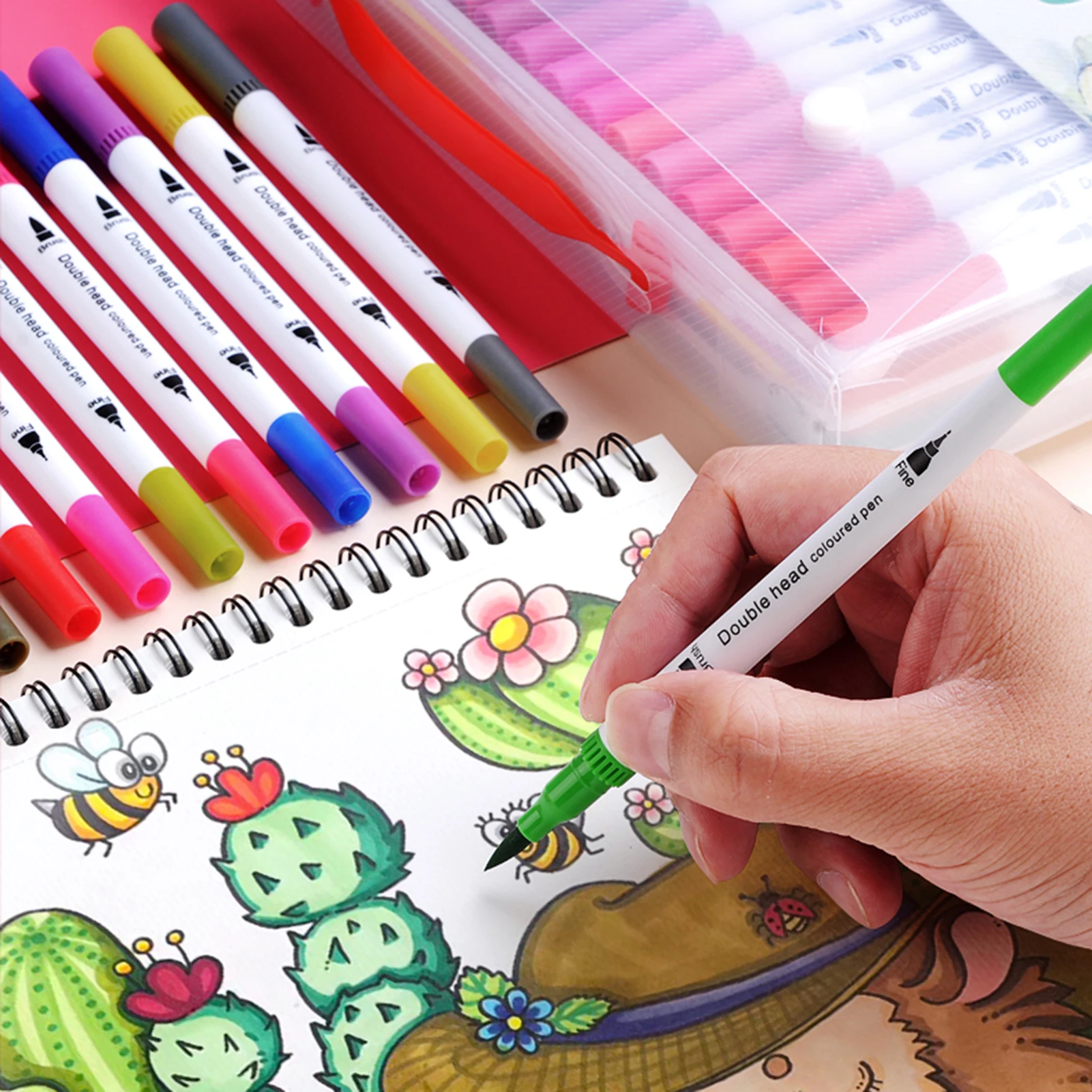 【Яркие цвета 】:12/24/36/48/60/80/100 цветов на выбор. Уникальные и яркие ручки с двумя наконечниками, которые могут удовлетворить различные потребности в живописи, идеально подходят для рисования линий и деталей, рисования, рисования, раскрашивания, журналистики, планировщика, заметок, нанесения отметок, написание подписи.