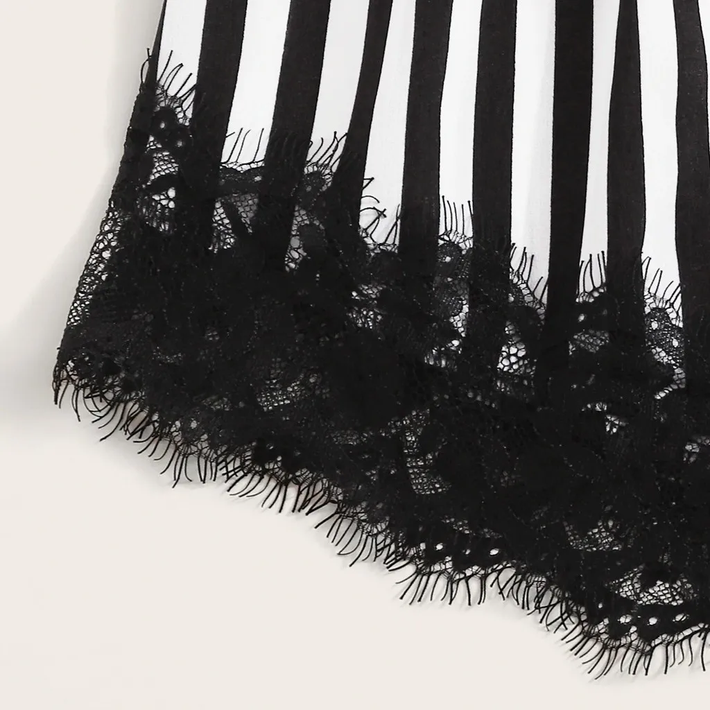Повседневное женское платье с v-образным воротом, пижамный комплект пикантные кружевные Сатиновые платья в полоску, платье на бретелях, летняя одежда для сна, шорты с бантом комплект Пижама femme пикантные W4