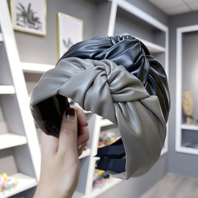 PU Headband Front Knot Solid Color Stylish Headband for Women Fashion Hair Hoop