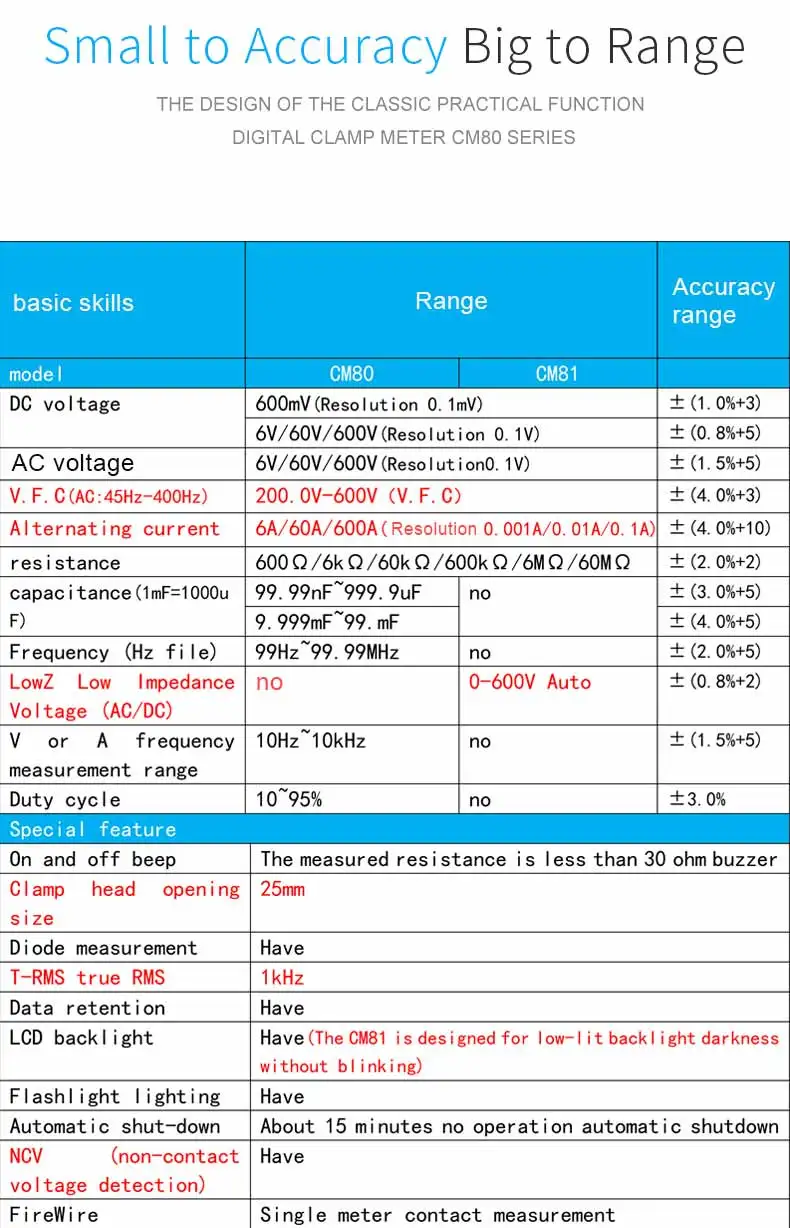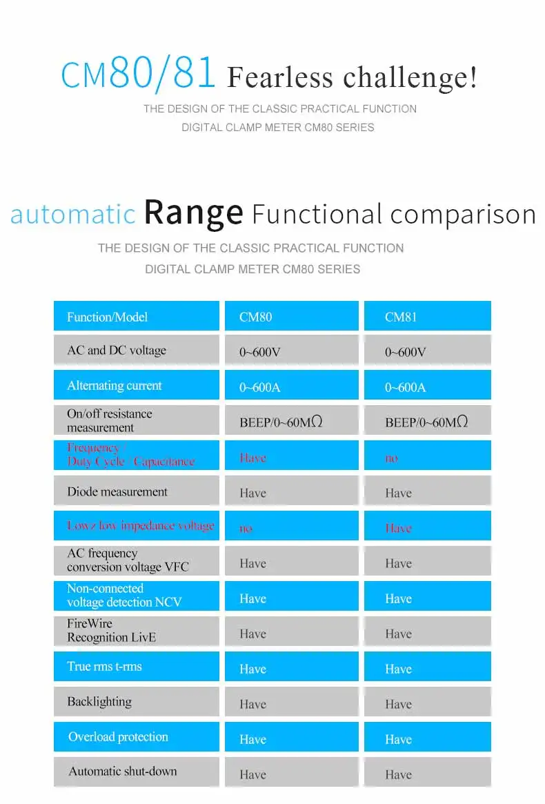 CM81 может измерять низкое сопротивление низкого напряжения (AC/DC 0 ~ 600 в авто),CM80 не может