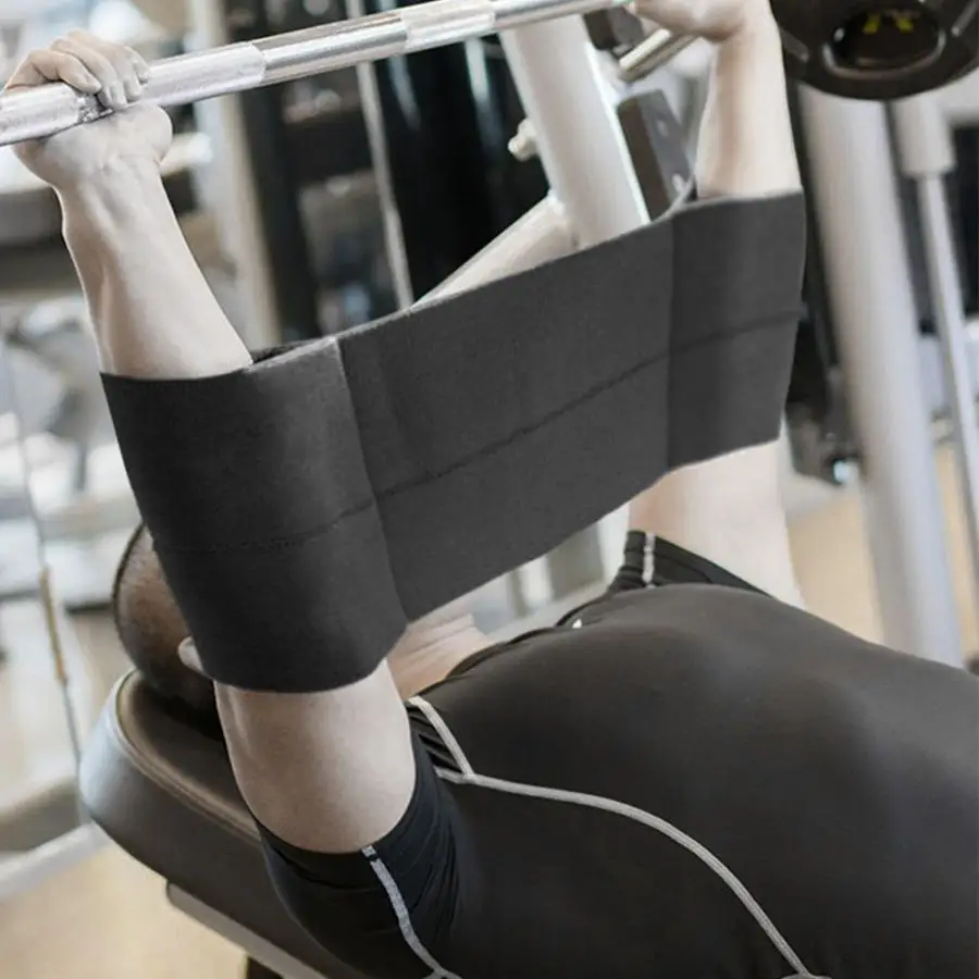 В стендовых прессах эта лента может поддерживать ваши руки, предотвращая травму мышц, а также может помочь вам сохранить правильную осанку для поднятия веса. Снимает боль от скамейки. Может помочь вам исправить положение скамейки. Высокая эластичность, предотвращает тряску рук. Максимальная длина растяжения составляет около 100 см.