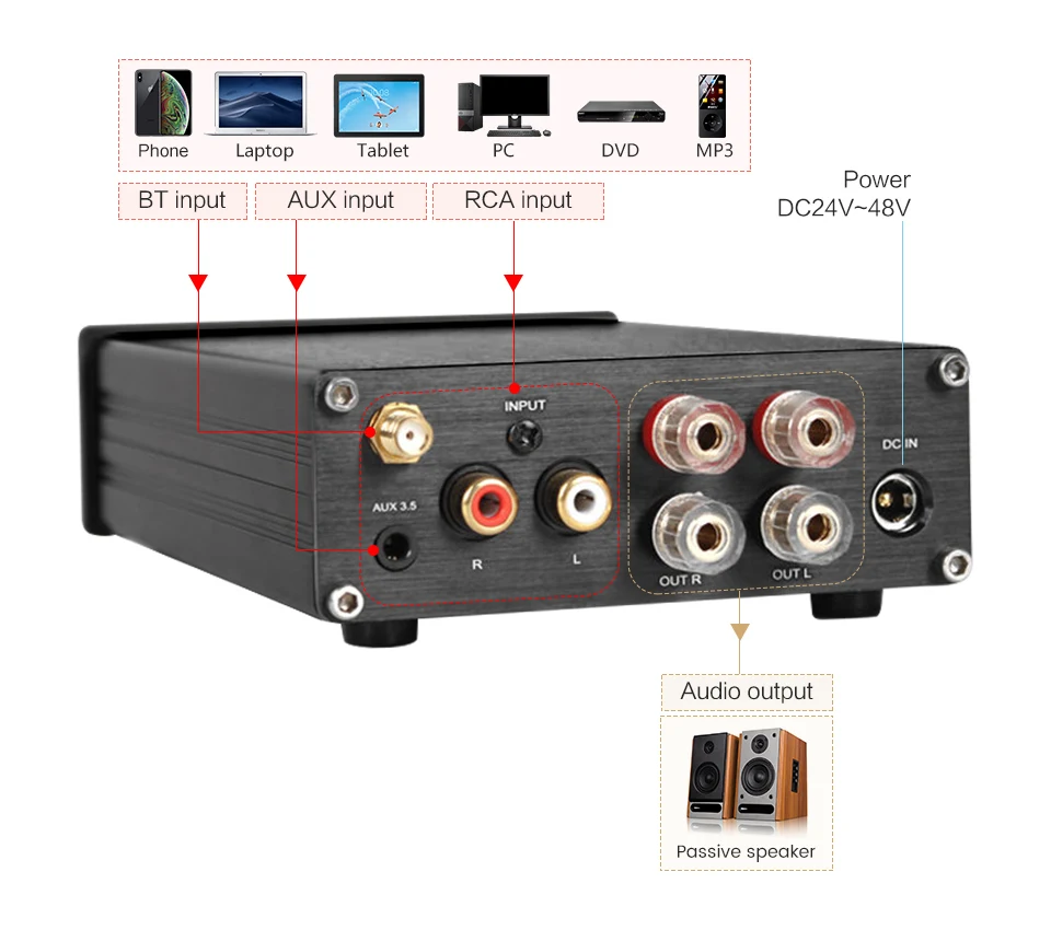 При одновременном вводе двух методов приоритет имеет вход Bluetooth. После подключения по Bluetooth вход RCA автоматически отключается; Когда вам нужен аналоговый вход, пожалуйста, отключите функцию Bluetooth мобильный телефон, прежде чем вы сможете переключиться